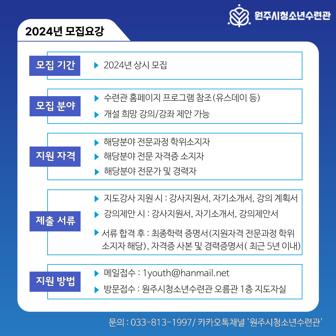 2024년 프로그램 지도강사 공개 모집