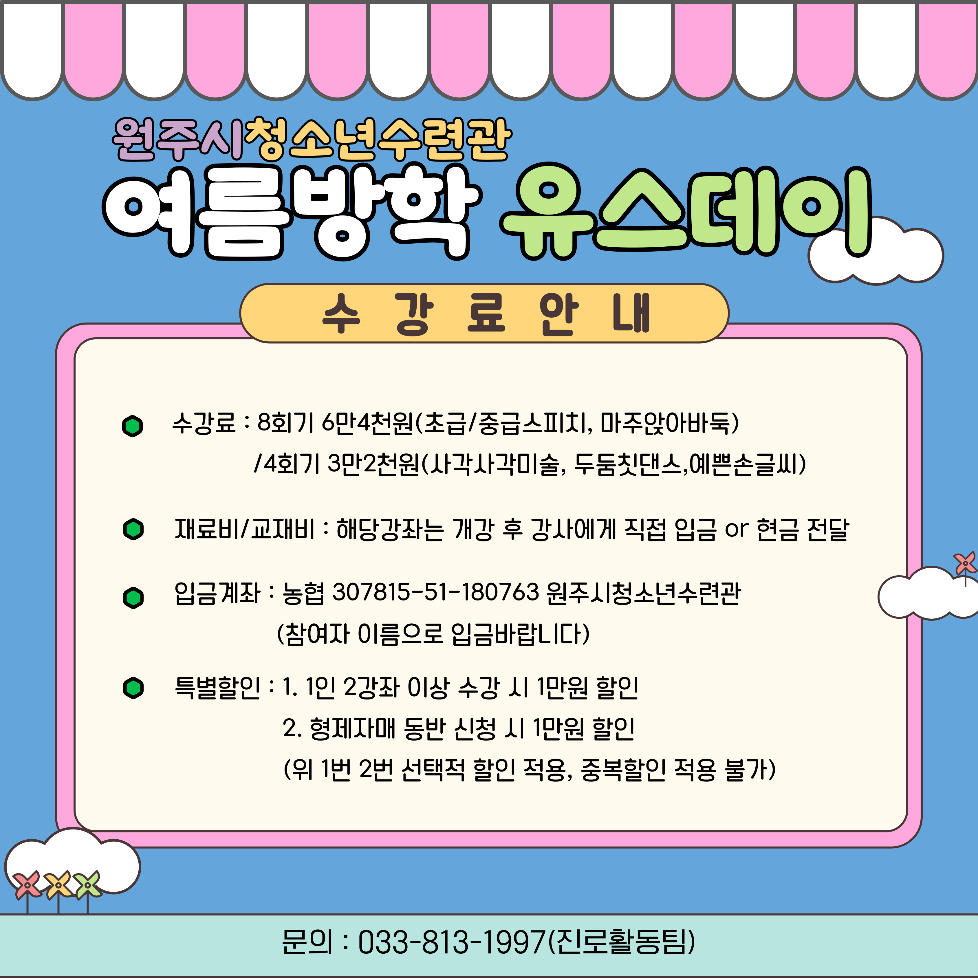 안녕하세요 원주시청소년수련관입니다:)