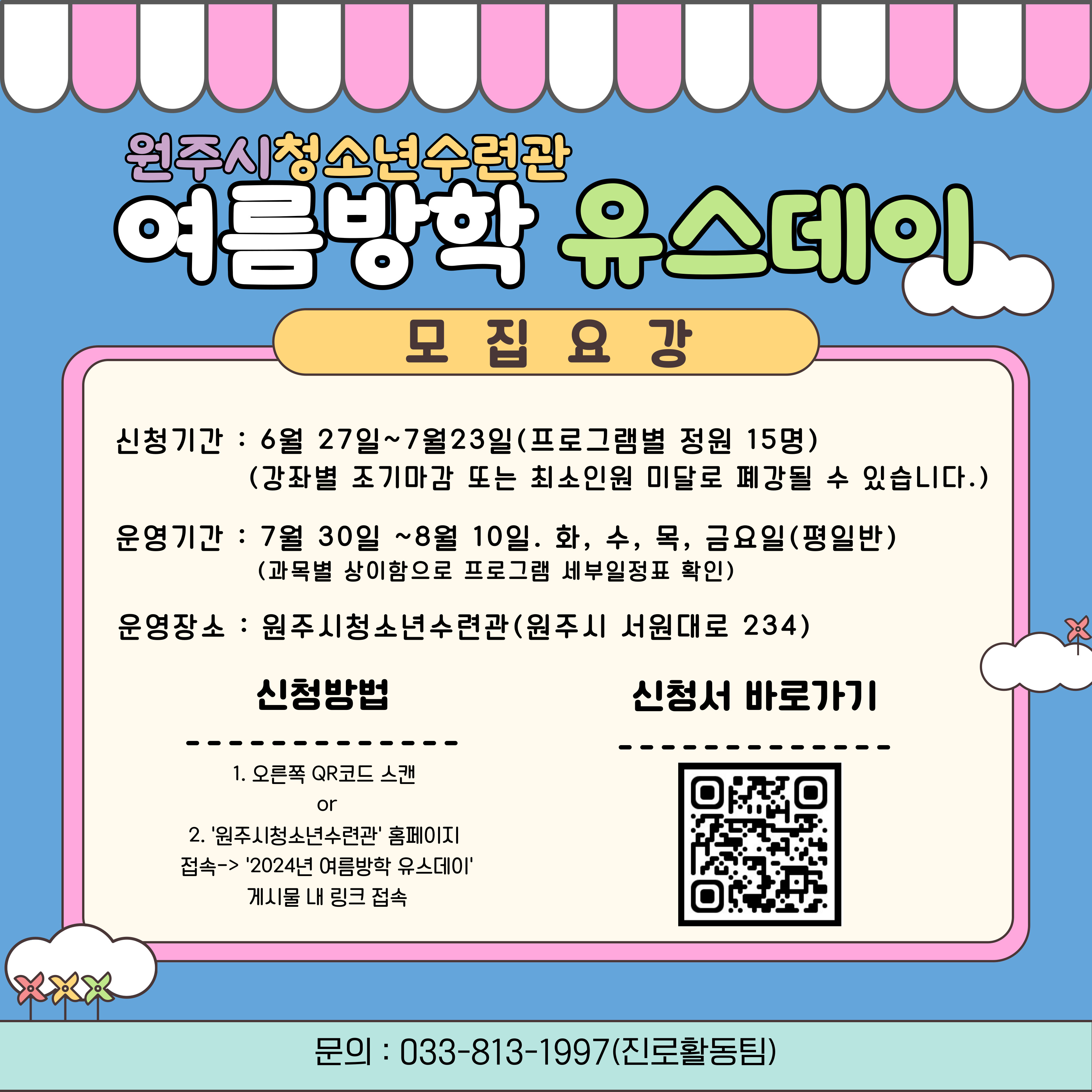 2024년 여름방학시즌  '유스데이' 프로그램 참여자 모집 안내합니다.