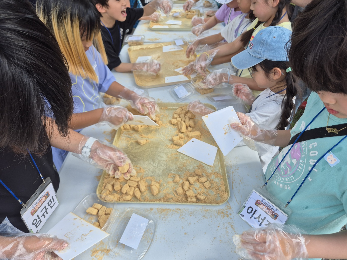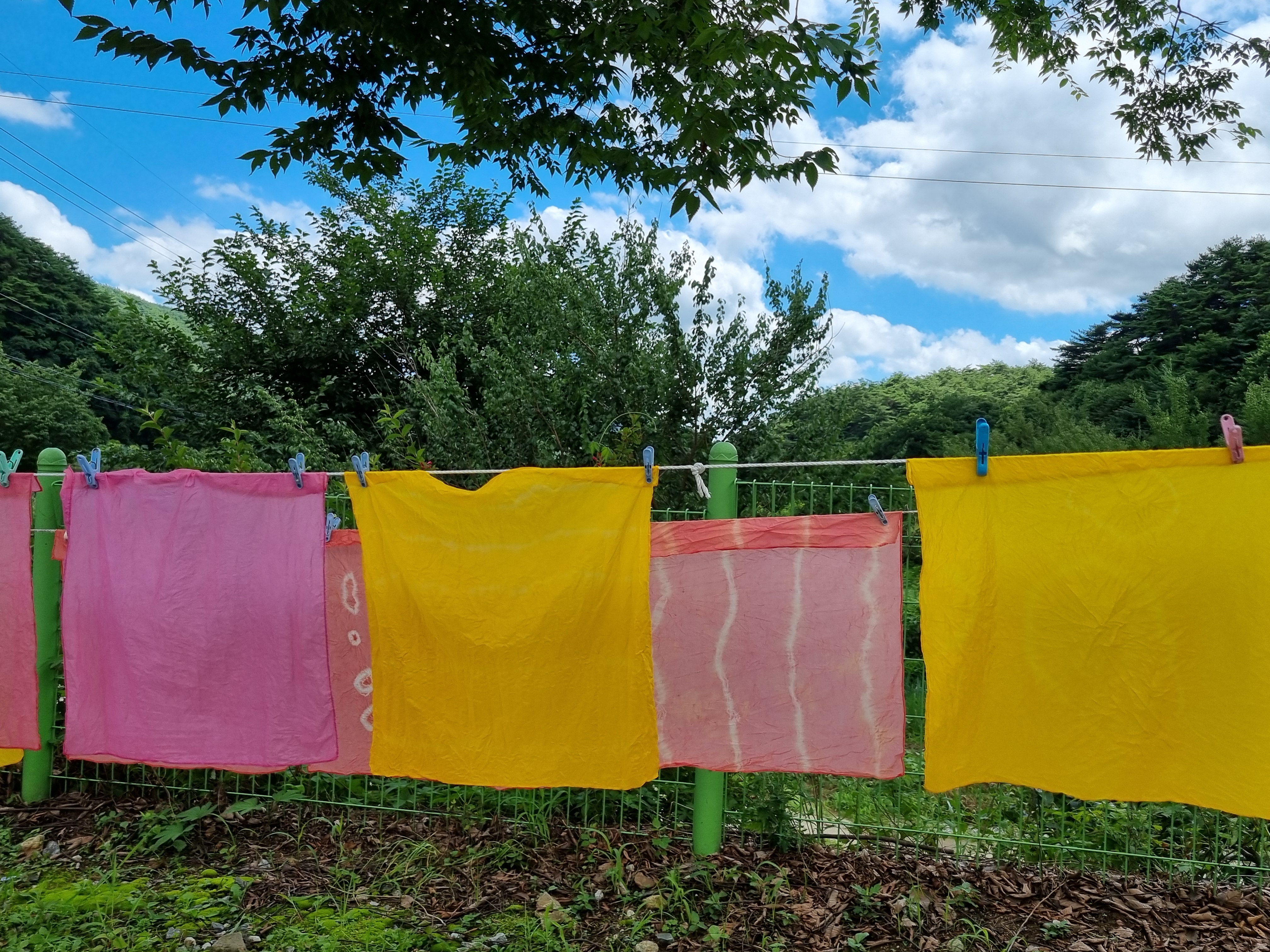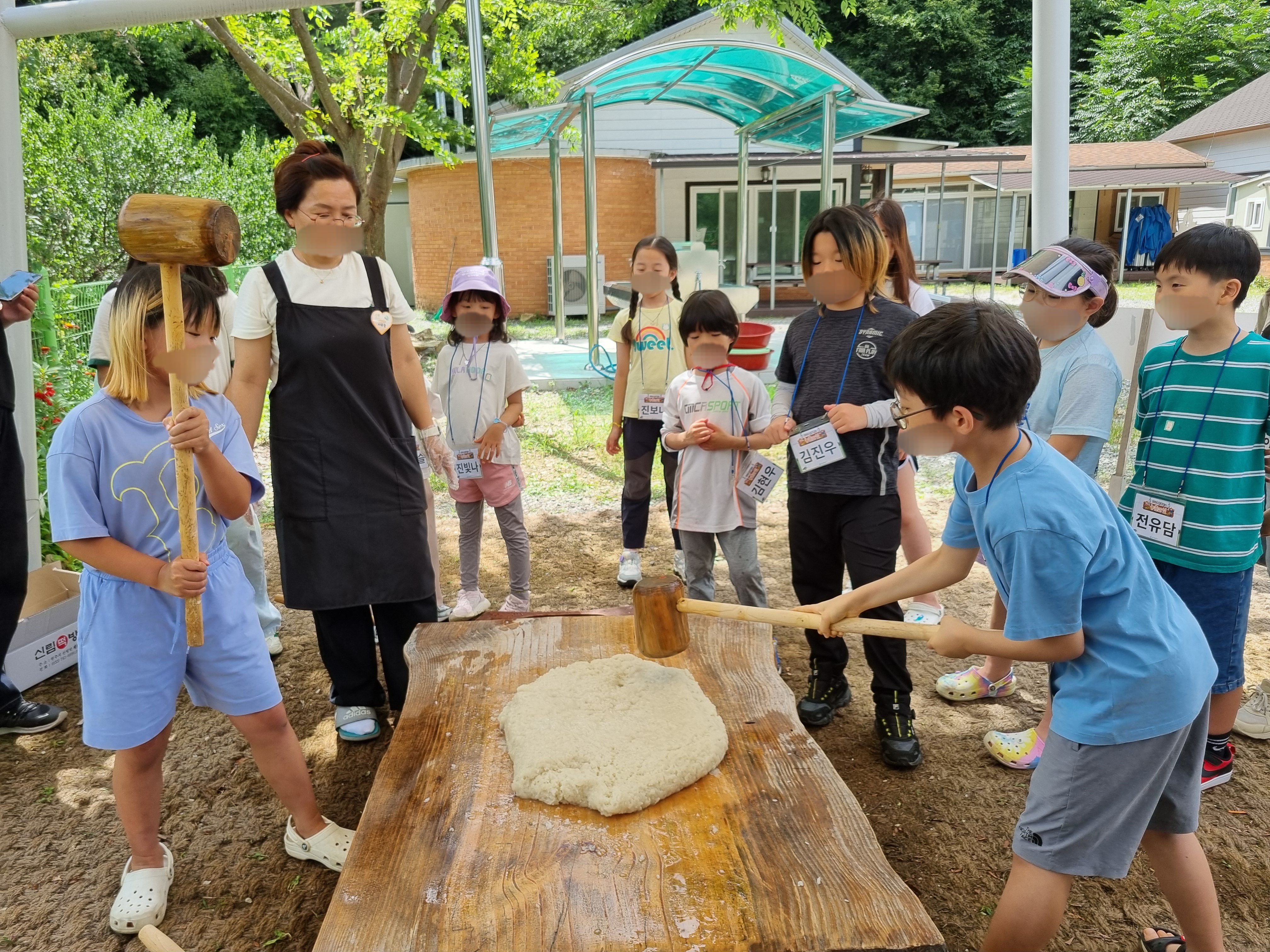 옥수수 수확 체험을 시작으로 천연염색으로 이쁜 손수건을 만들고 떡메치기 체험으로 맛있는 인절미를 만들어 먹고 시원한 블루베리 빙수까지 만들어 먹었습니다😀