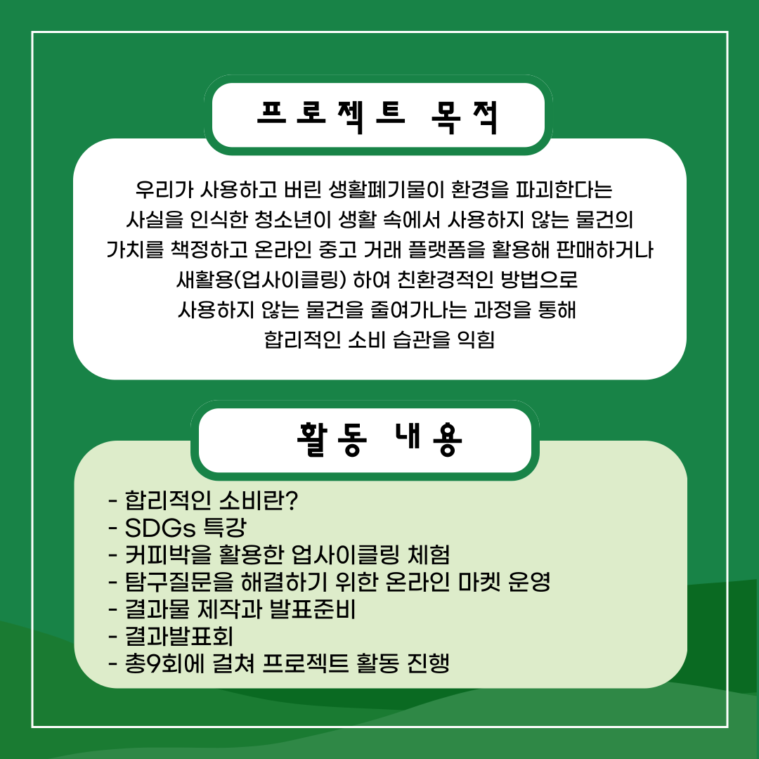 "사용하지 않는 물건으로 인한 환경파괴를 줄이는 방법"에 대해 고민한 결과,