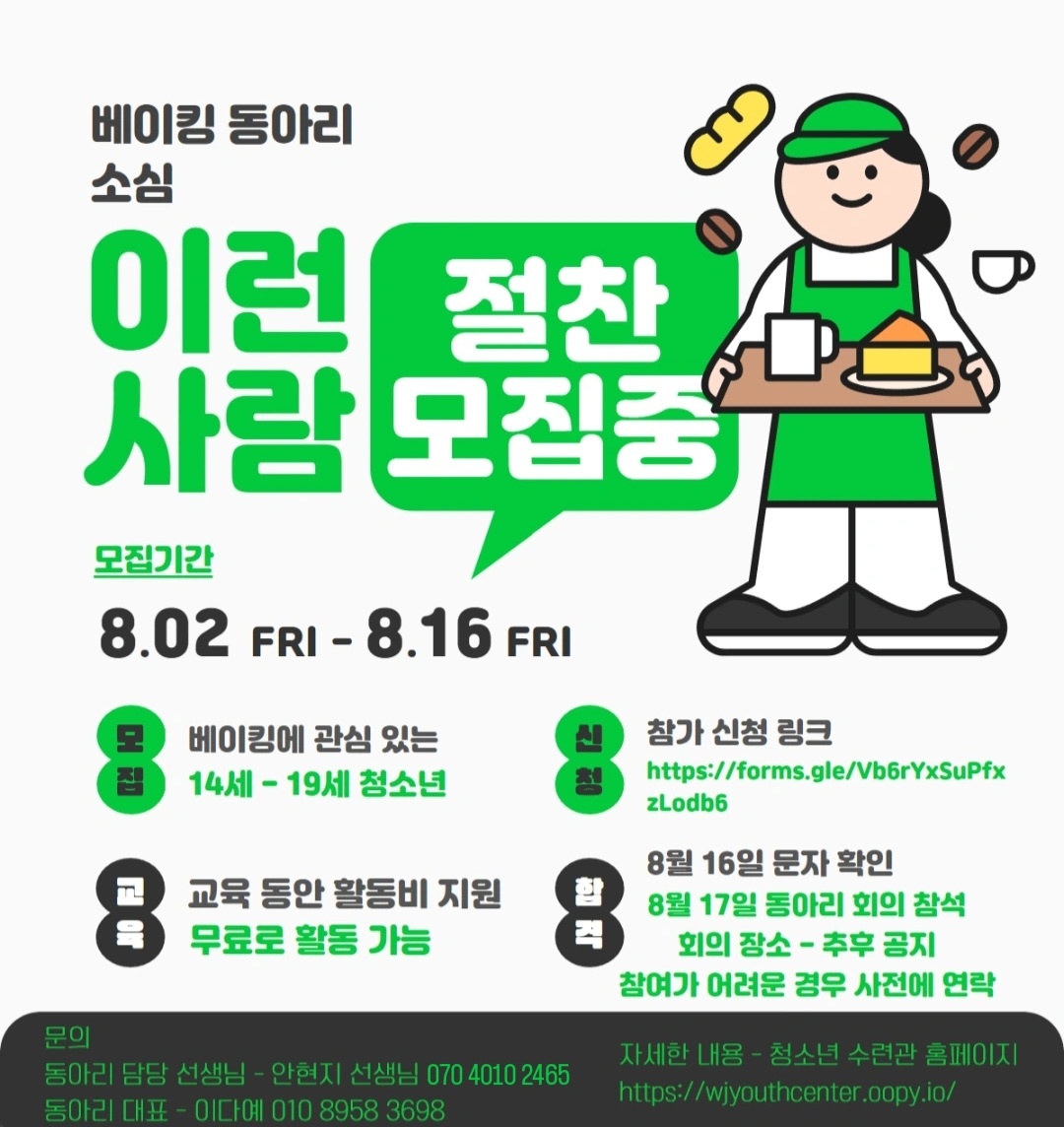 이번 2024 하반기에 저희 소심과 같이 베이킹을 할 청소년 친구들을 찾고 있어요!!