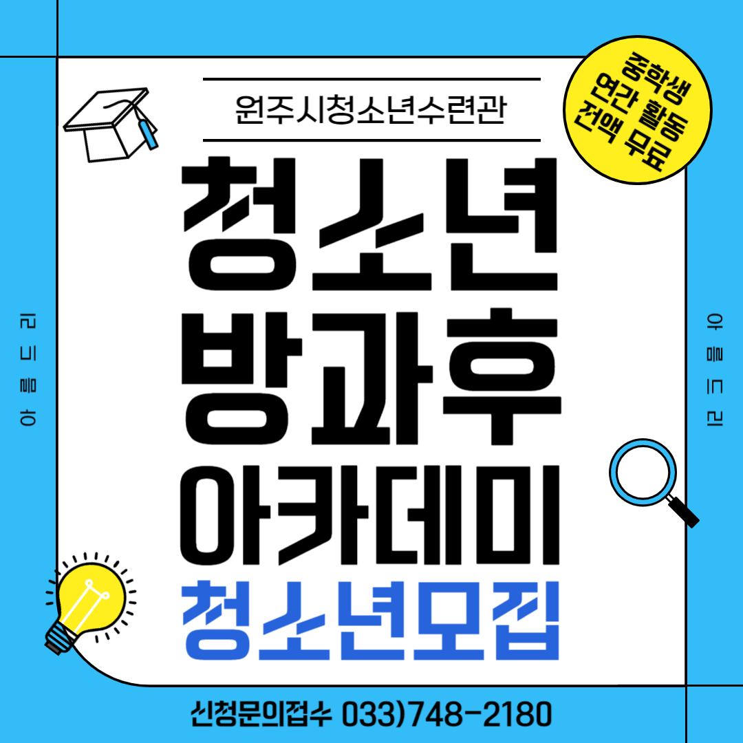 원주시청소년수련관 청소년방과후아카데미 청소년 모집