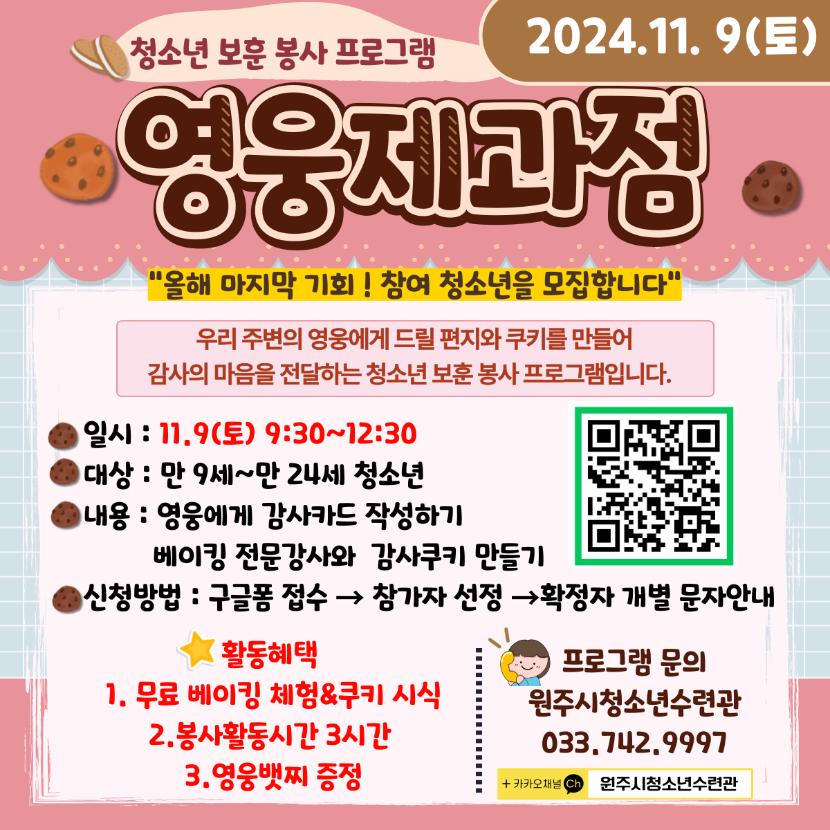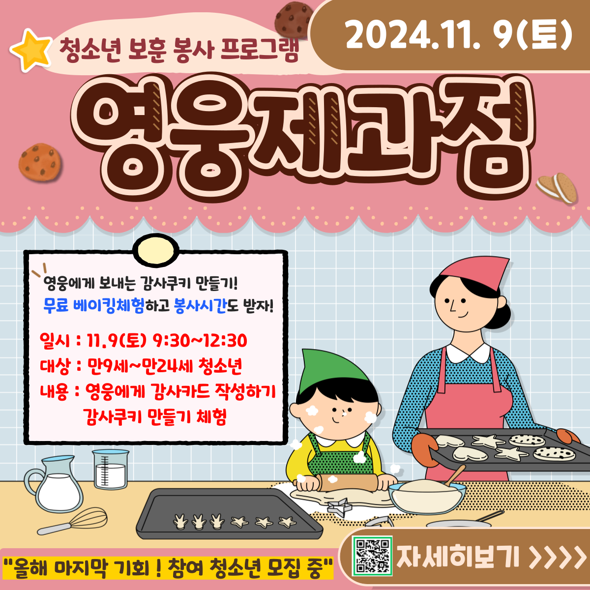 청소년보훈봉사프로그램 영웅제과점 참가자 모집