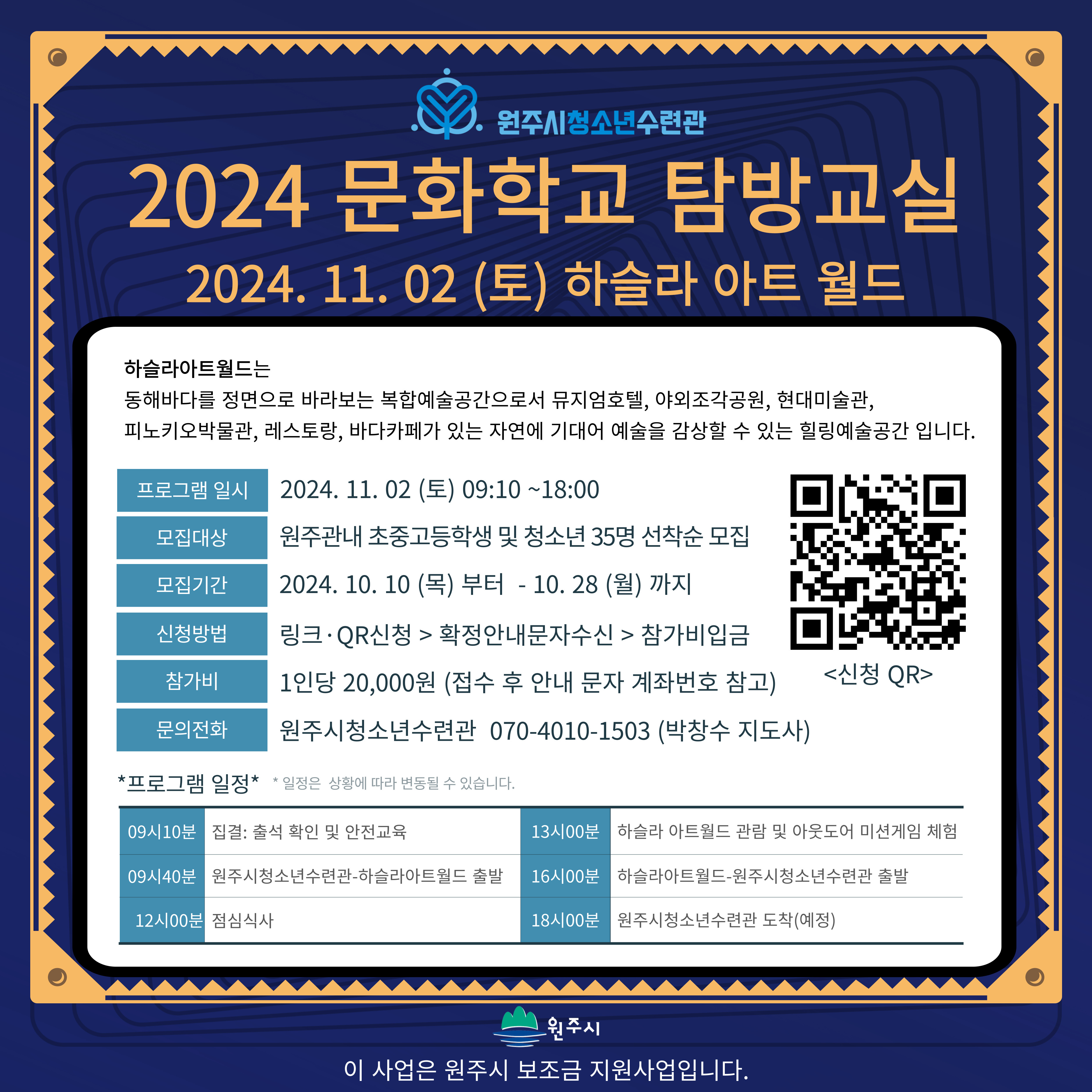 -대상: 원주관내 청소년 35명 (초/중/고등학생) 선착순 접수