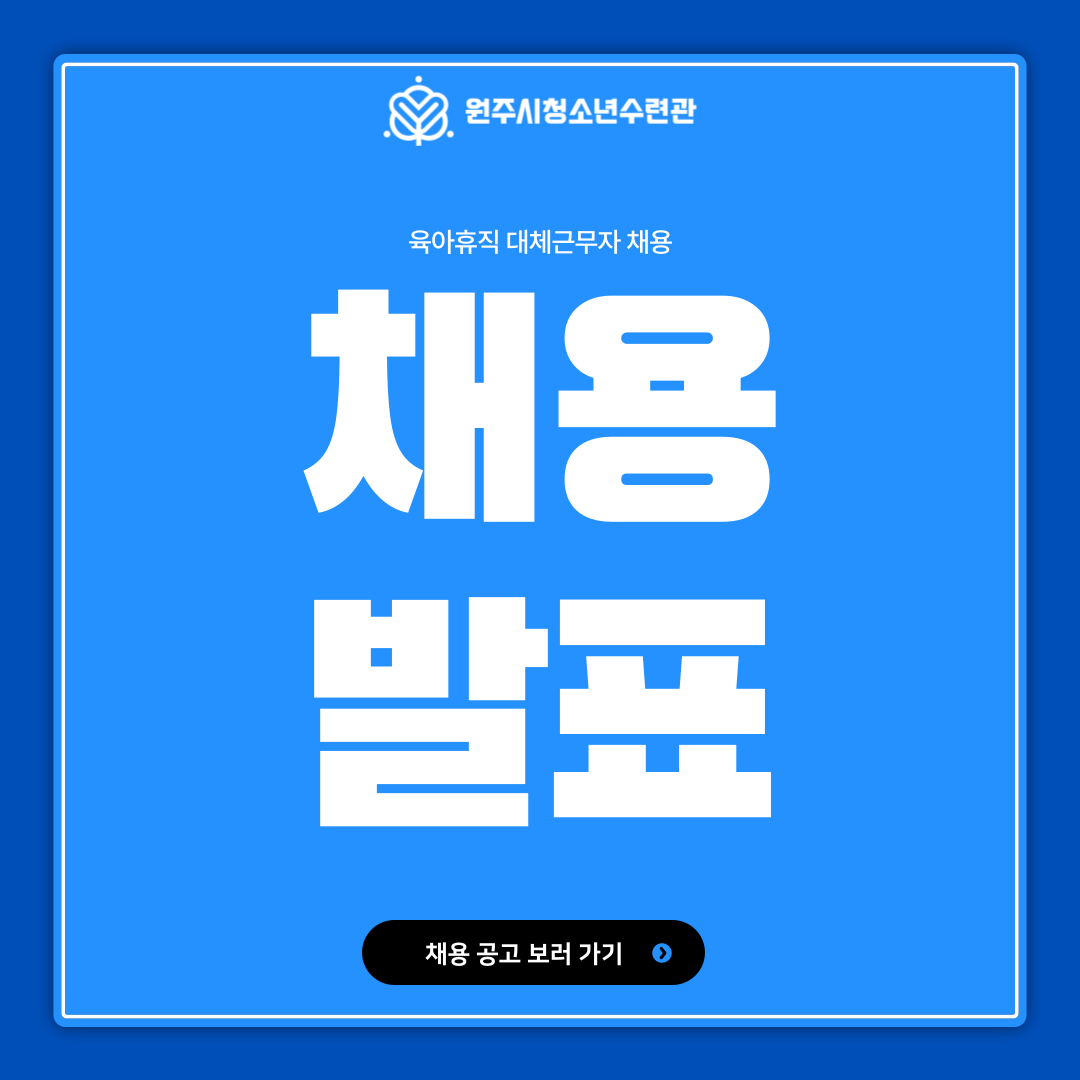 원주시청소년수련관 직원채용(육아휴직대체) 최종합격자 공고
