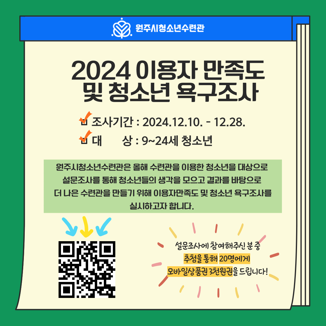 2024 원주시청소년수련관 이용자 만족도 및 청소년욕구조사