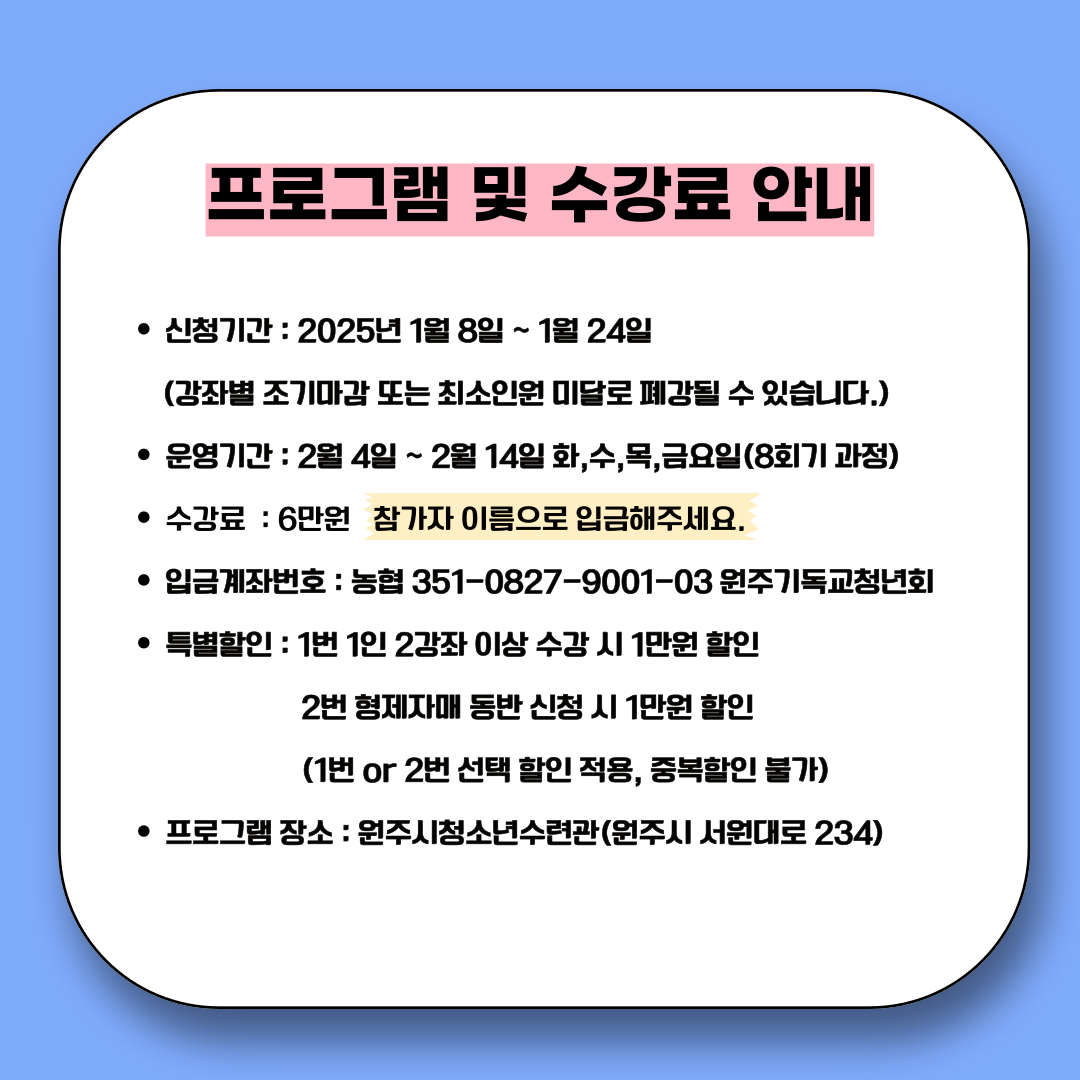 ✅운영기간 : 2025년 2월 4일~ 2월 14일 화,수,목,금요일 2주간 8회기과정