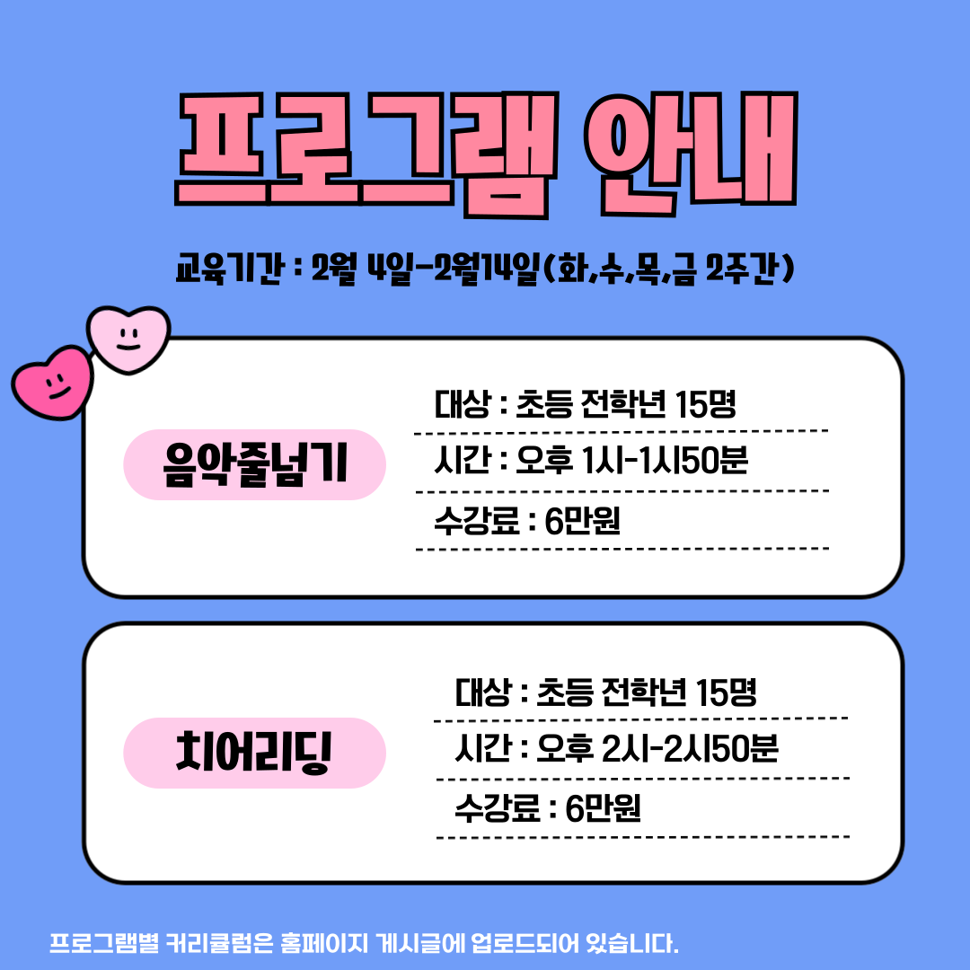 겨울방학 프로그램으로 음악줄넘기, 치어리딩 수업을 준비했습니다! 🍂