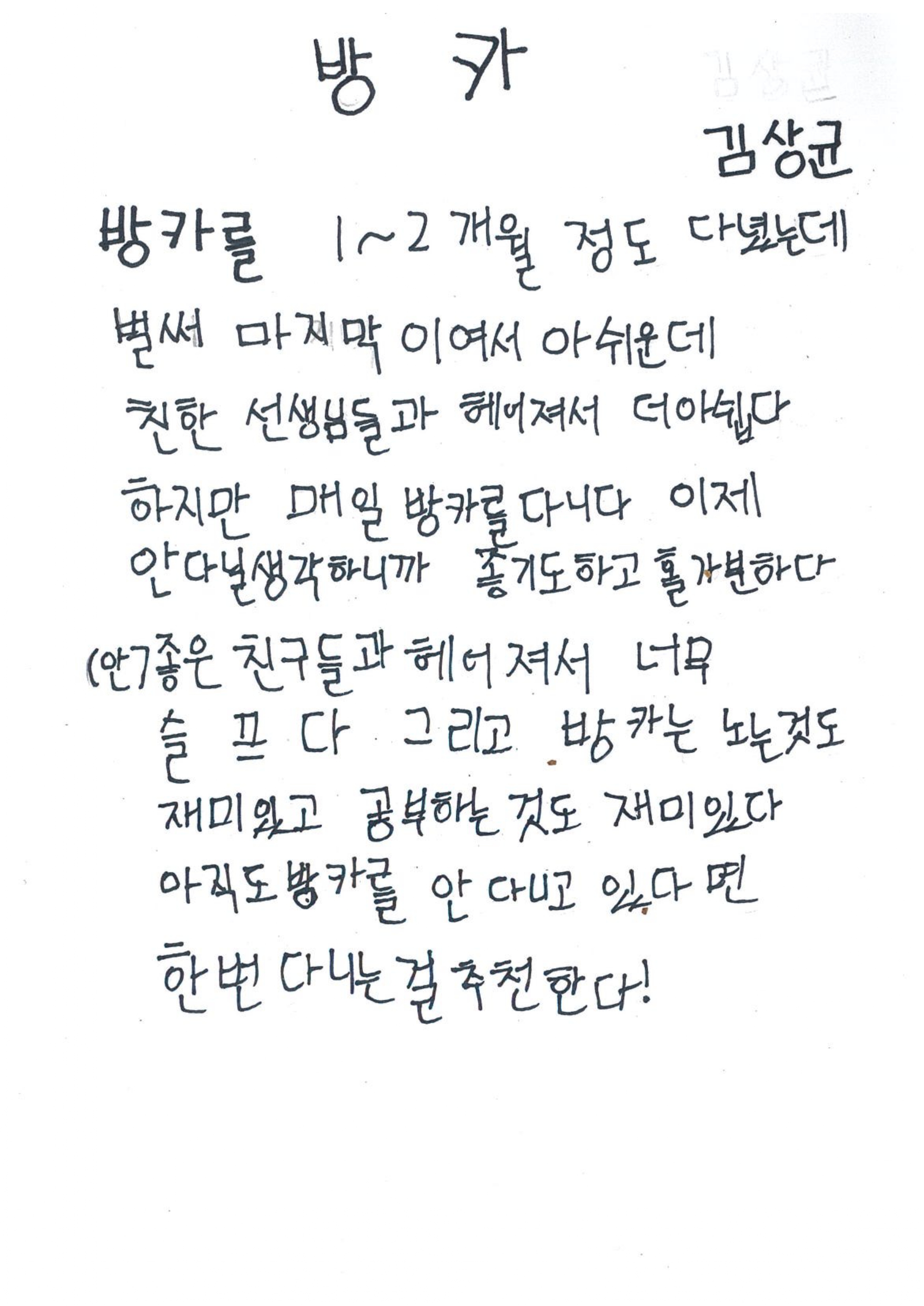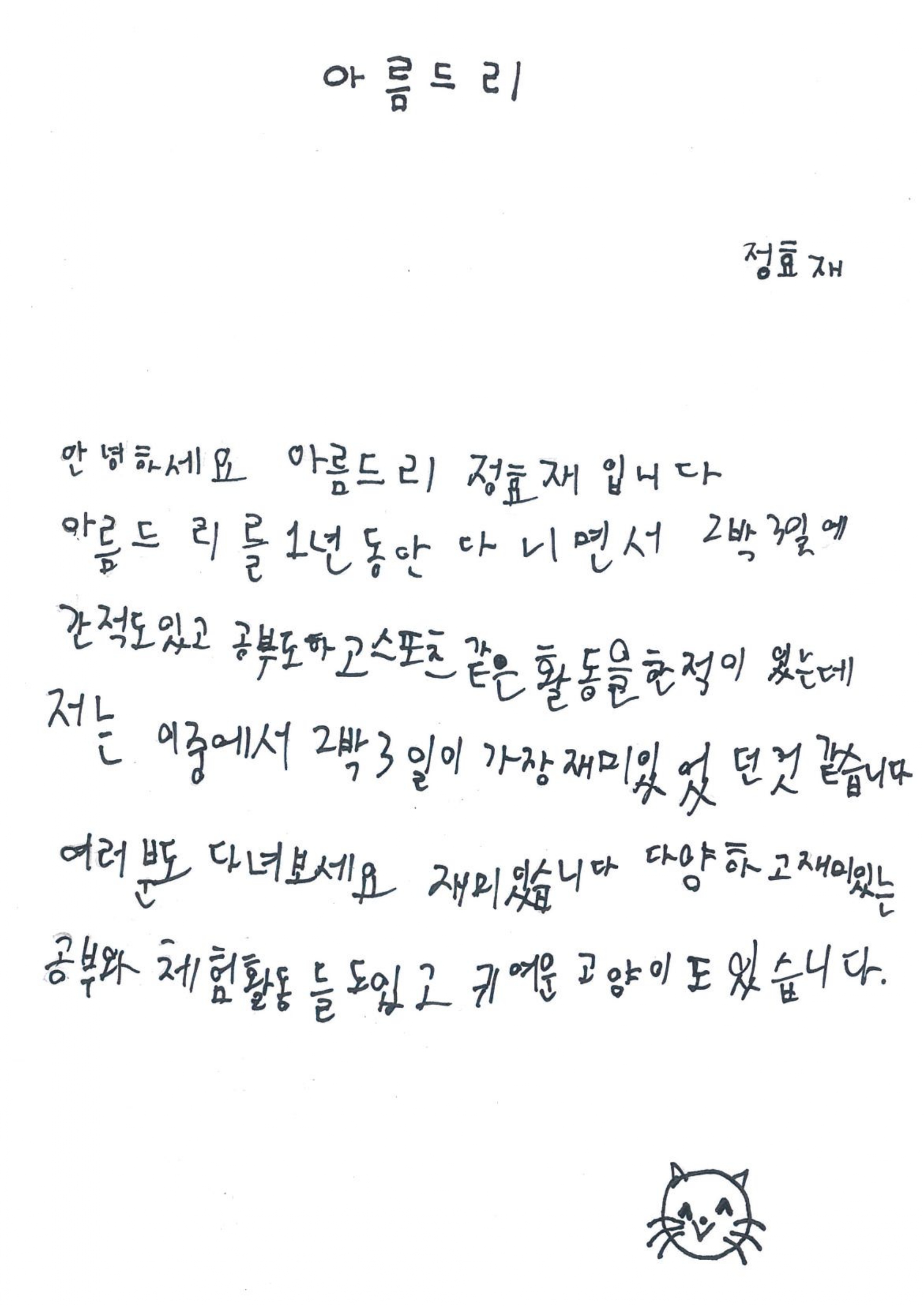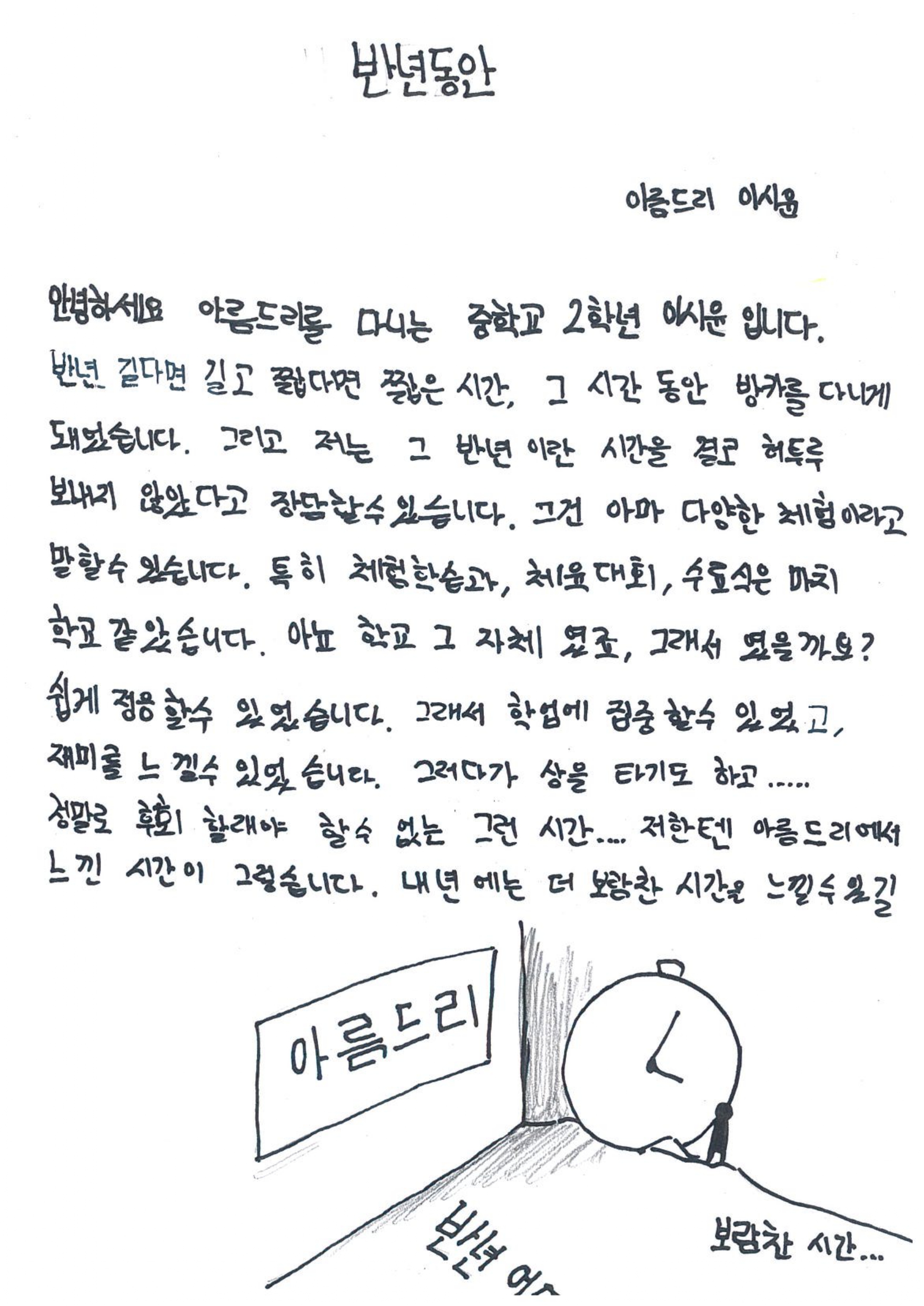 수료식에 참여한 청소년은 "처음에는 학원 같은 곳인줄 알고 왔는데 다양한 체험도 하고 공부도 하고, 배울거리가 많아 일 년간 너무 즐거웠다. 앞으로도 계속 다니고 싶다"고 소감을 말했다.