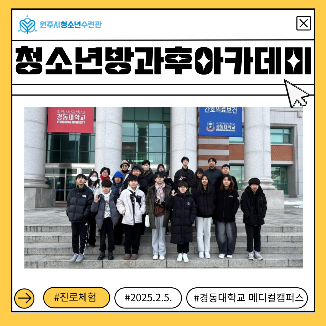 원주시청소년수련관 방과후아카데미 아름드리에서 함께 할 청소년을 모집합니다!