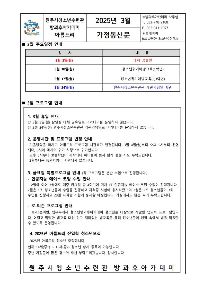 방과후아카데미/아름드리 소식
