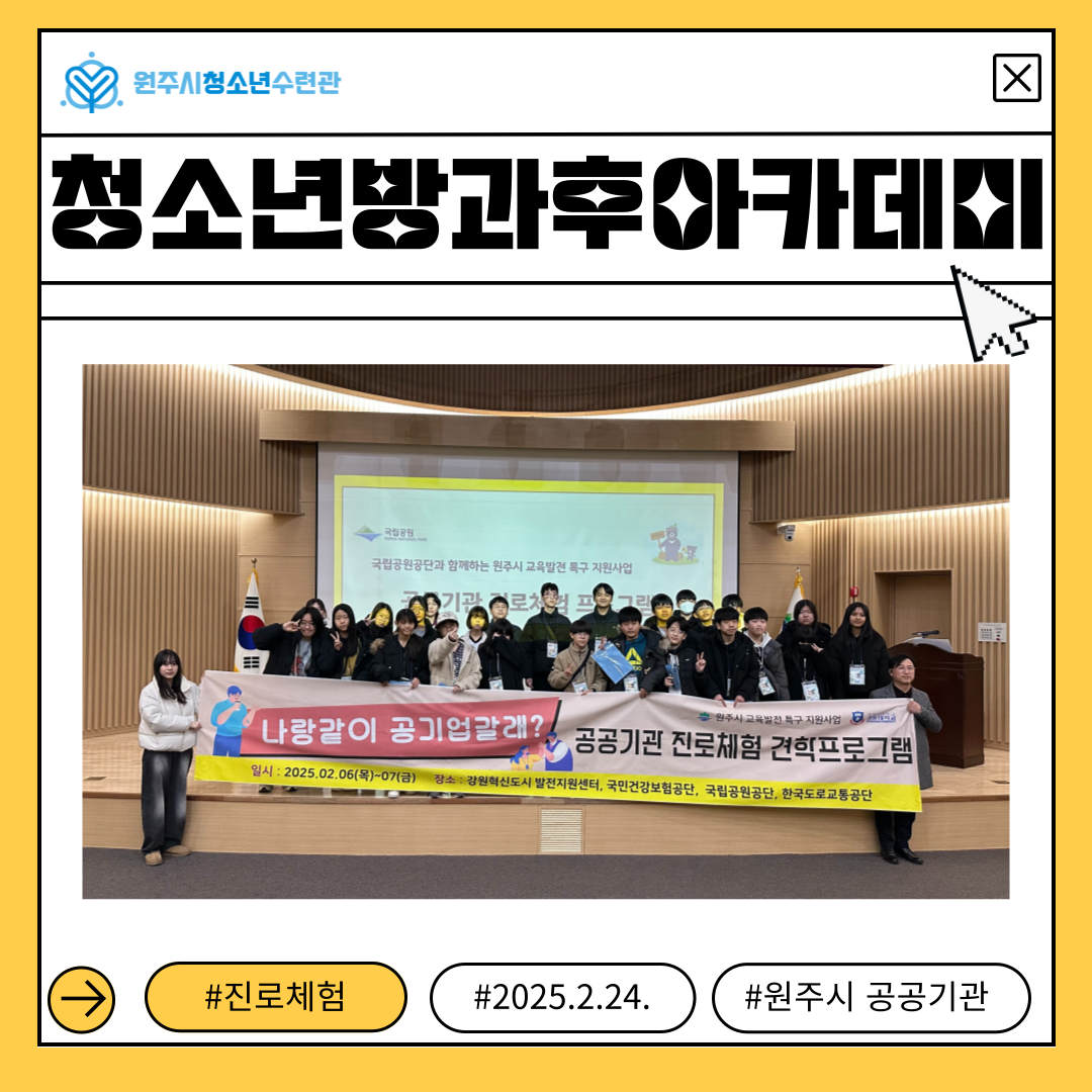 원주시청소년수련관 방과후아카데미 아름드리에서 함께 할 청소년을 모집합니다!