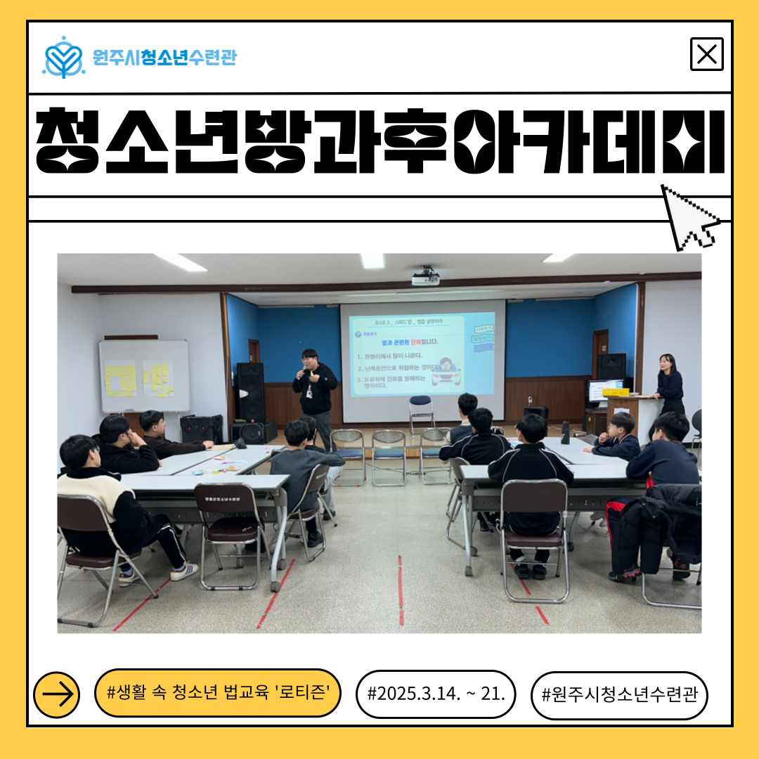 *원주시청소년수련관 방과후아카데미 아름드리는 중학교 1,2학년 청소년을 대상으로 합니다*