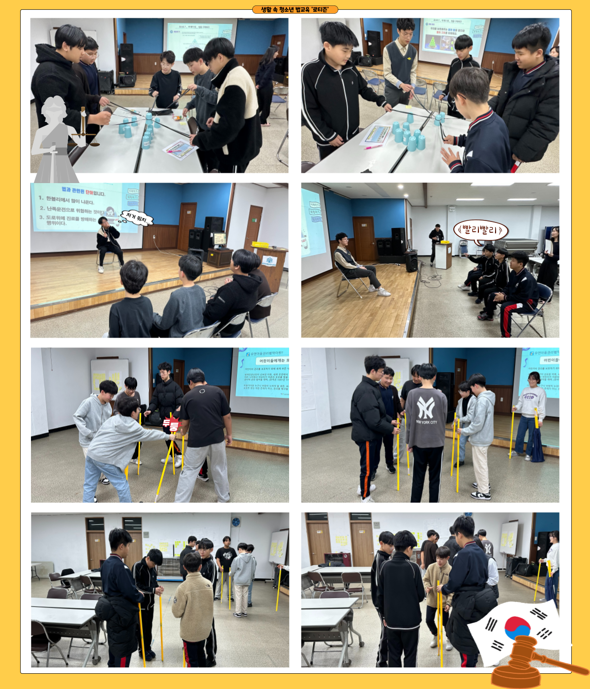 어렵고 딱딱한 법교육 대신 쉽고 재미있는 법교육을 통해 청소년들이 생활 속에서 법을 적용할 수 있도록 구성되었습니다.