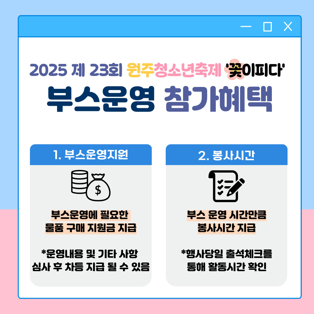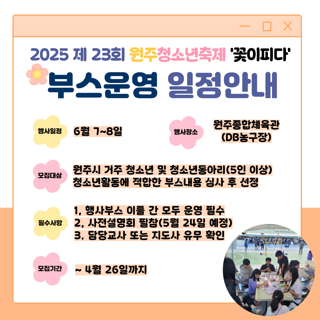 2025 원주청소년축제 '꽃이피다' 청소년동아리부스모집