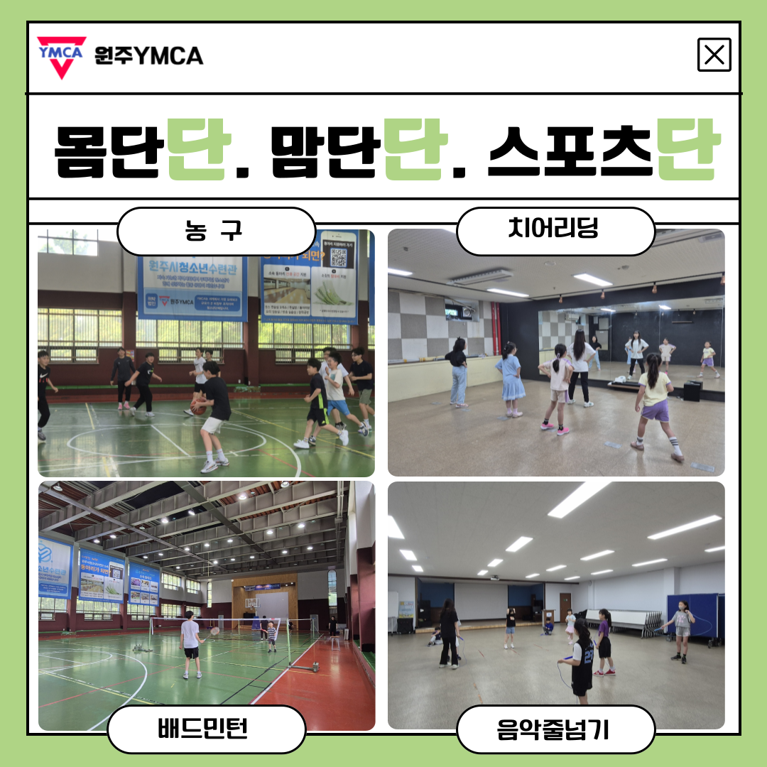 원주YMCA에서 진행한 몸단단. 맘단단. 스포츠단 프로그램이 안전하게 마무리 되었습니다. 청소년들이 이번활동을 통해 체력은