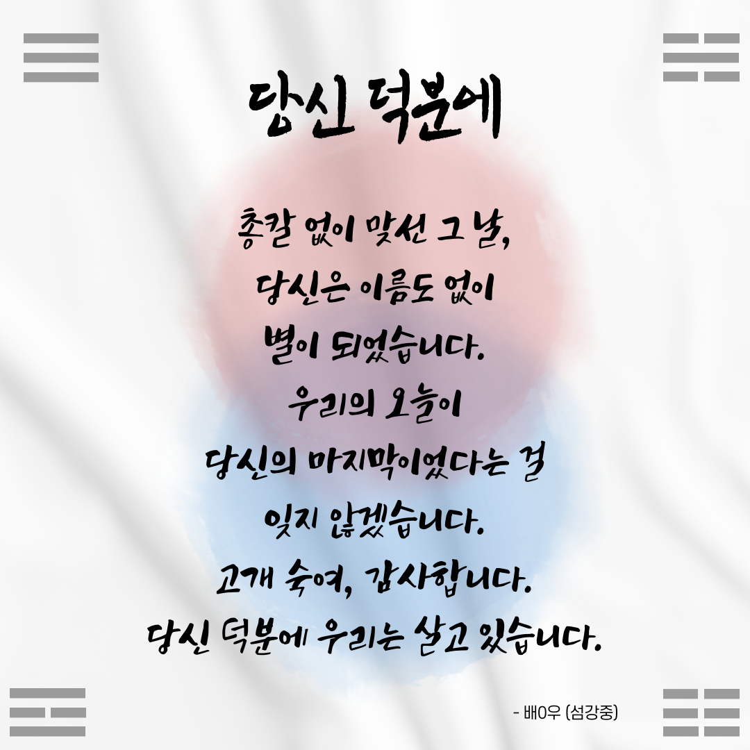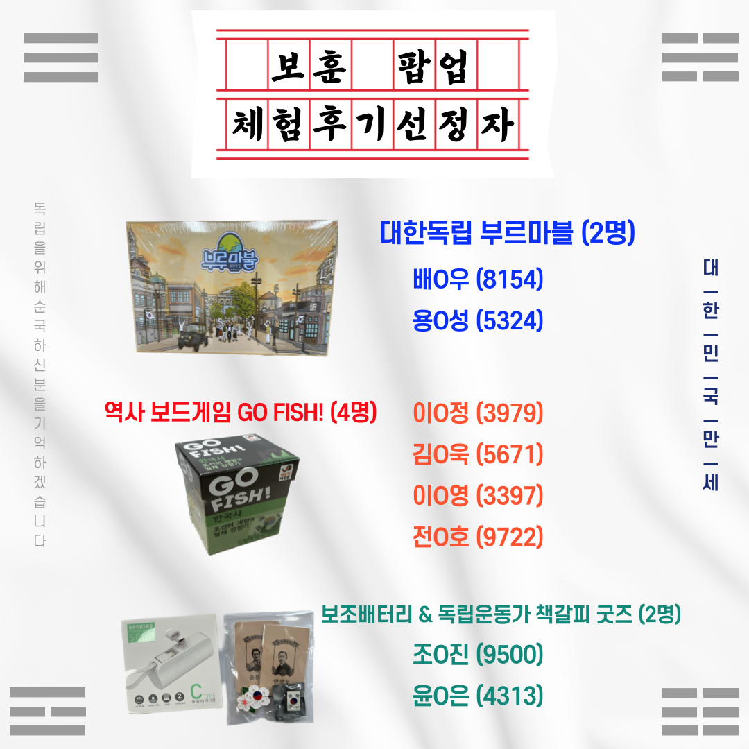 보훈 팝업 후기이벤트에 응모해주신 모든 분들께 다시 한번 감사드립니다.