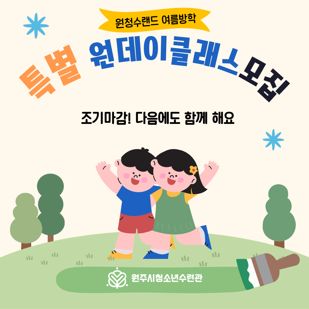 원청수랜드 여름방학 특별 원데이클래스 조기마감 안내