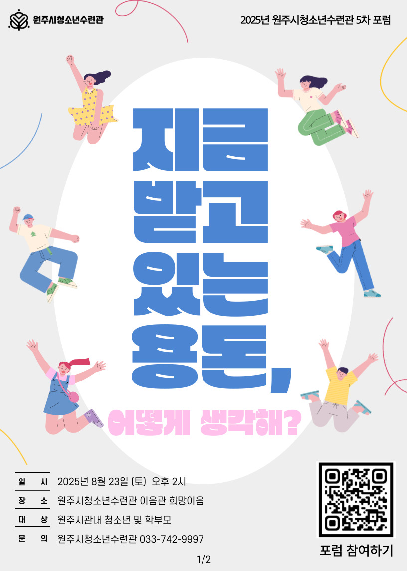 2025년 원주시청소년수련관 5차 포럼 참가자 모집 "지금 받고 있는 용돈, 어떻게 생각해?"