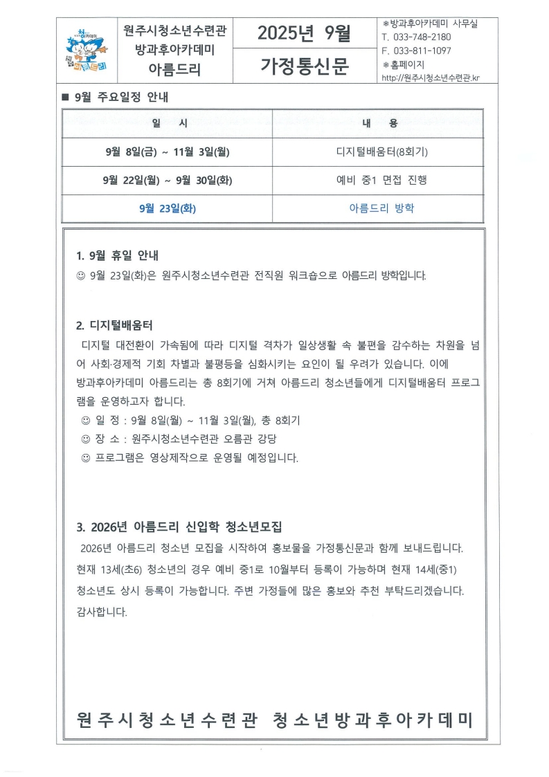 9월 가정통신문