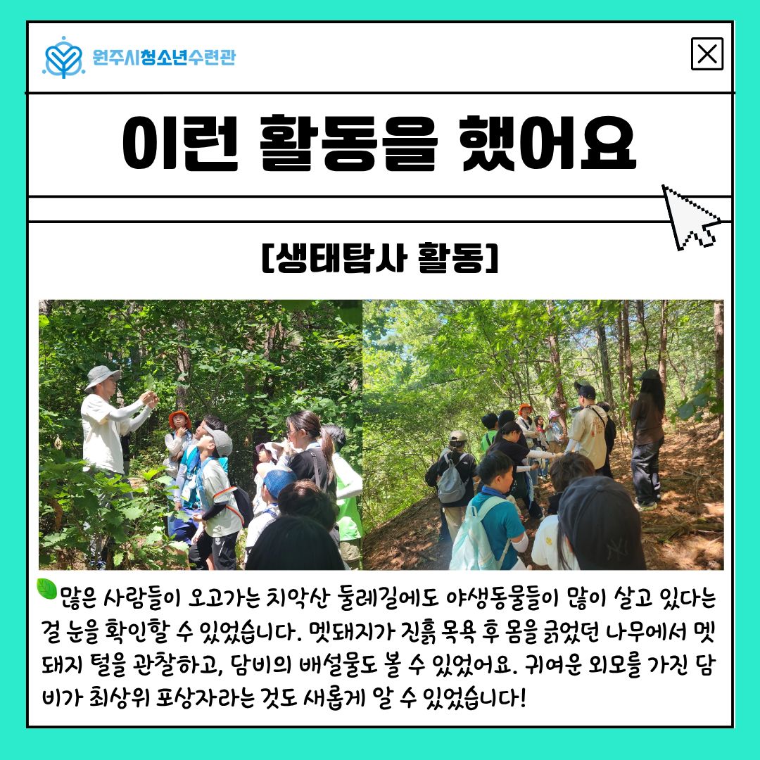 지난 7월 26일, 월간탐탐 장소편 '야생동물 흔적찾기' 활동 모습을 공유합니다.