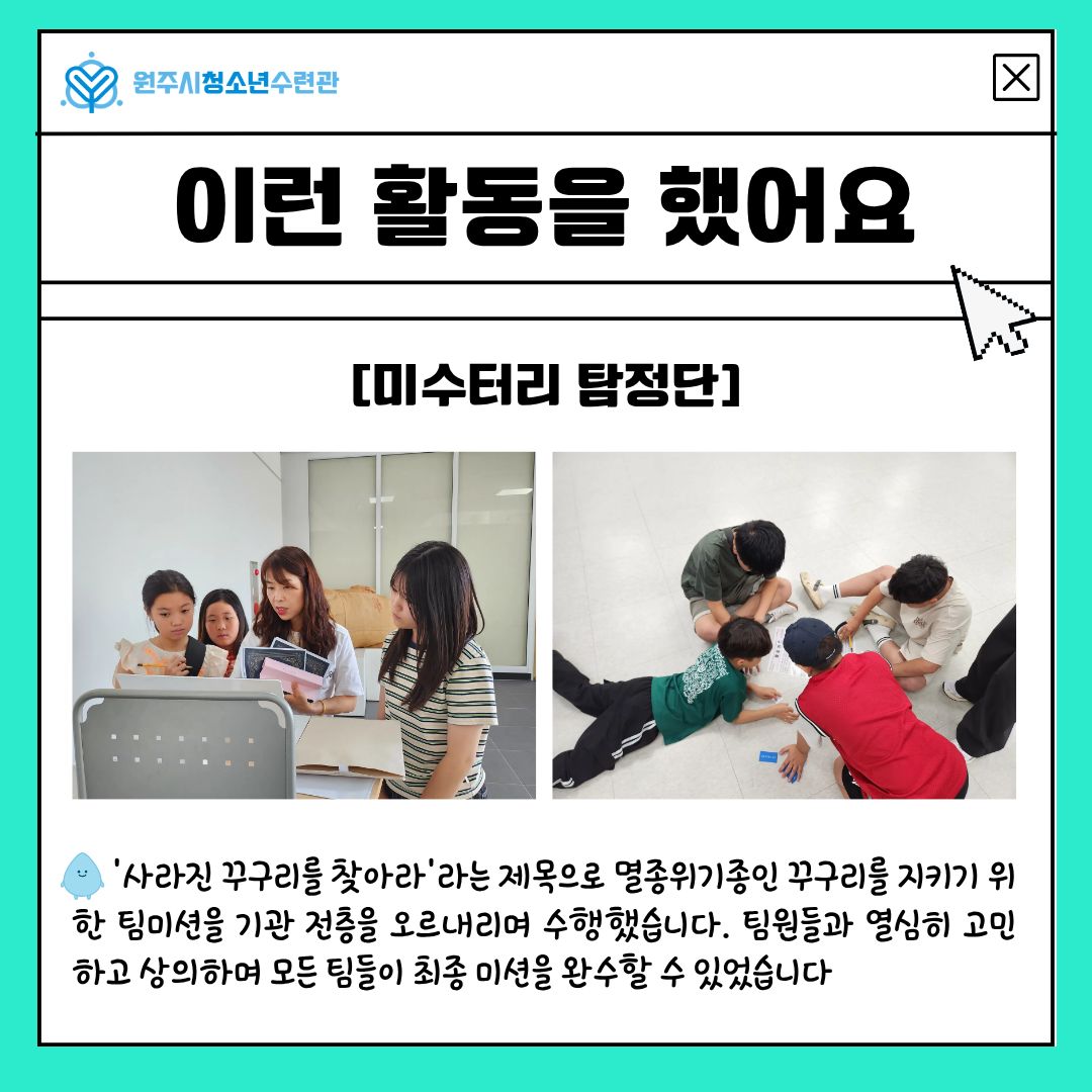 안녕하세요 원주시청소년수련관입니다🤗