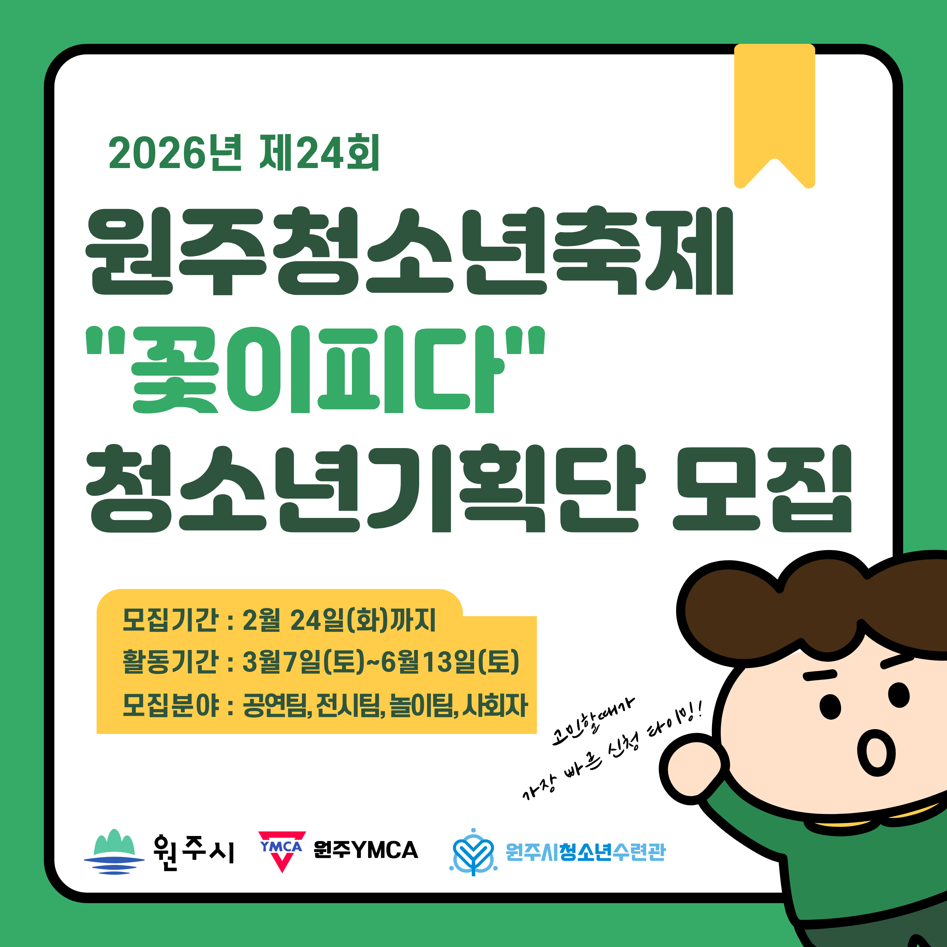 2026년 제24회 원주청소년축제"꽃이피다" 청소년추진위원회에 함께할 청소년기확단을 모집합니다!