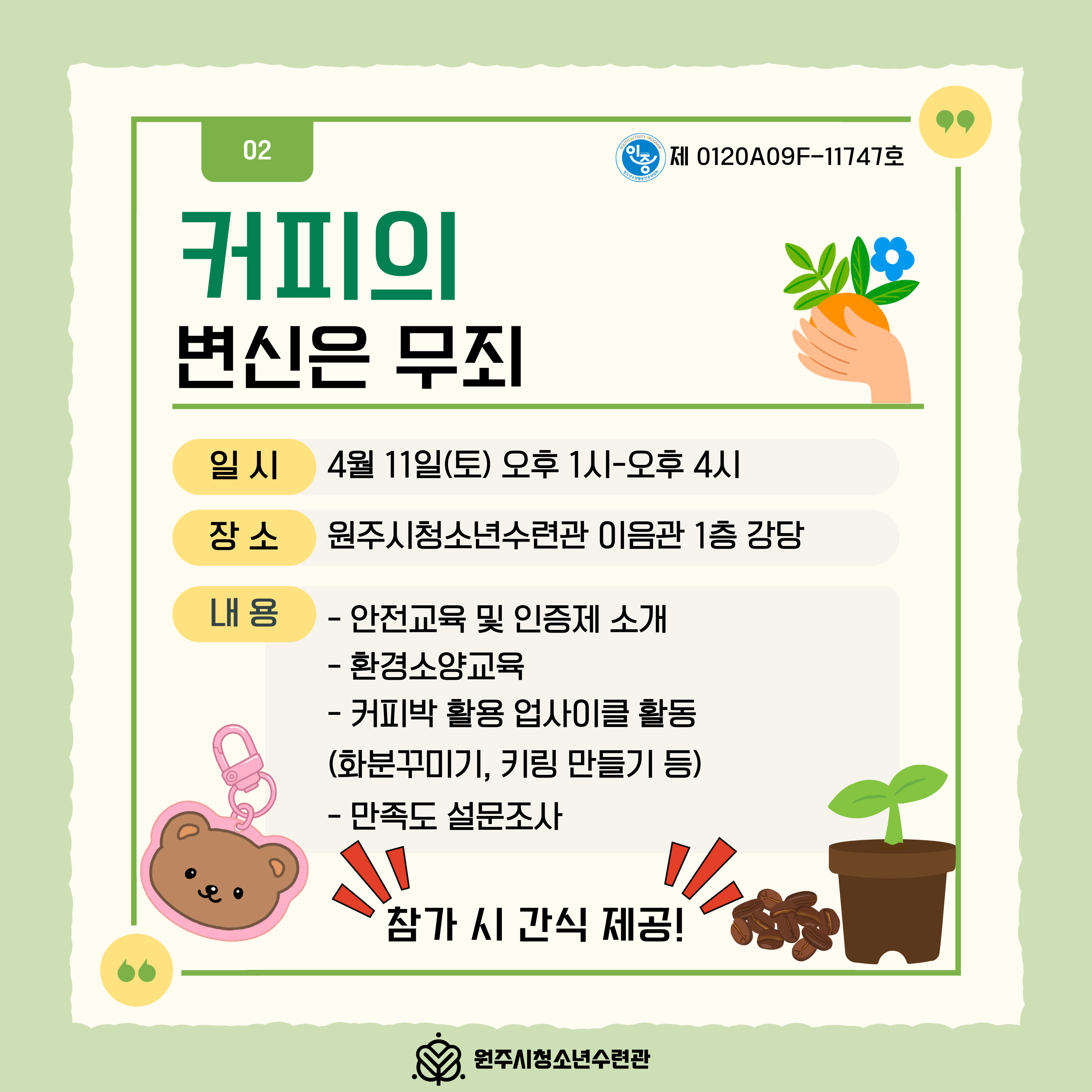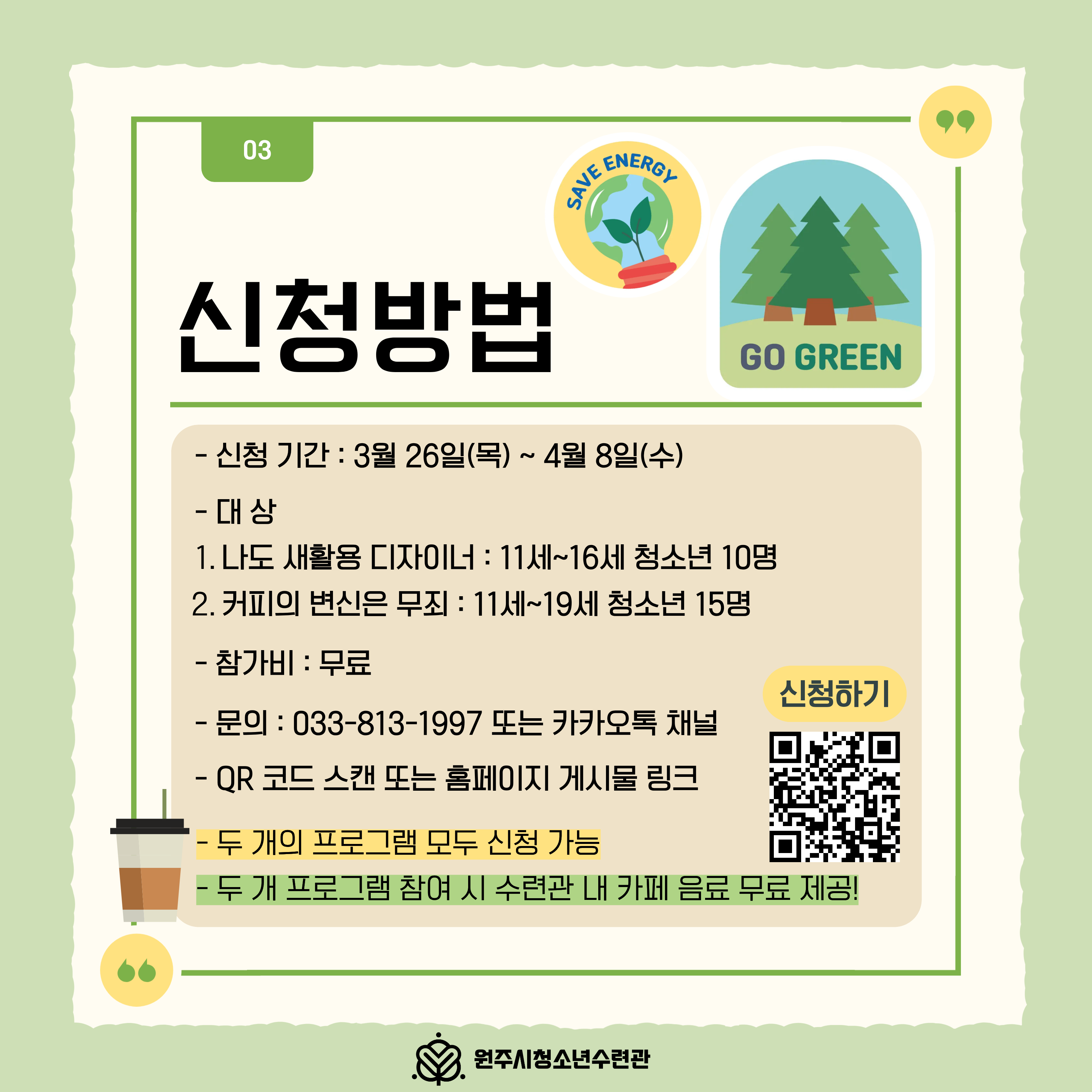 특별 혜택 : 두 프로그램 모두 참여 시 수련관 내 카페 음료 무료 제공!