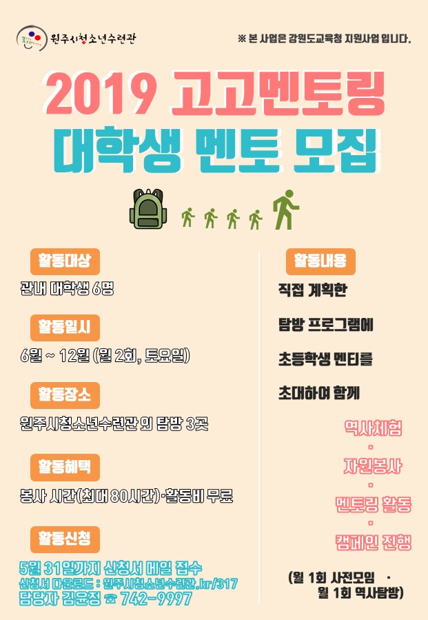 2019 고고멘토링에 참가할 6명의 대학생 멘토를 모집합니다!