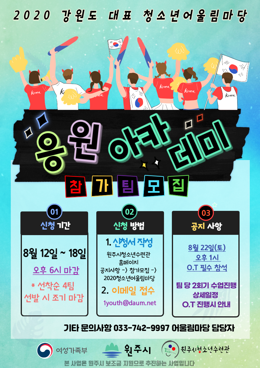 2020 강원도 대표 청소년어울림마당 응원아카데미 참가팀을 모집합니다!