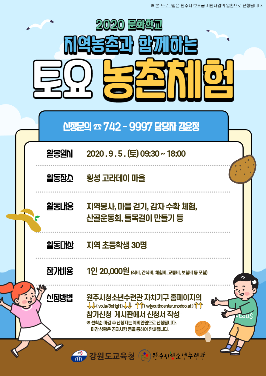 올해도 토요 프로그램 농촌체험 초등 참가자를 모집합니다!