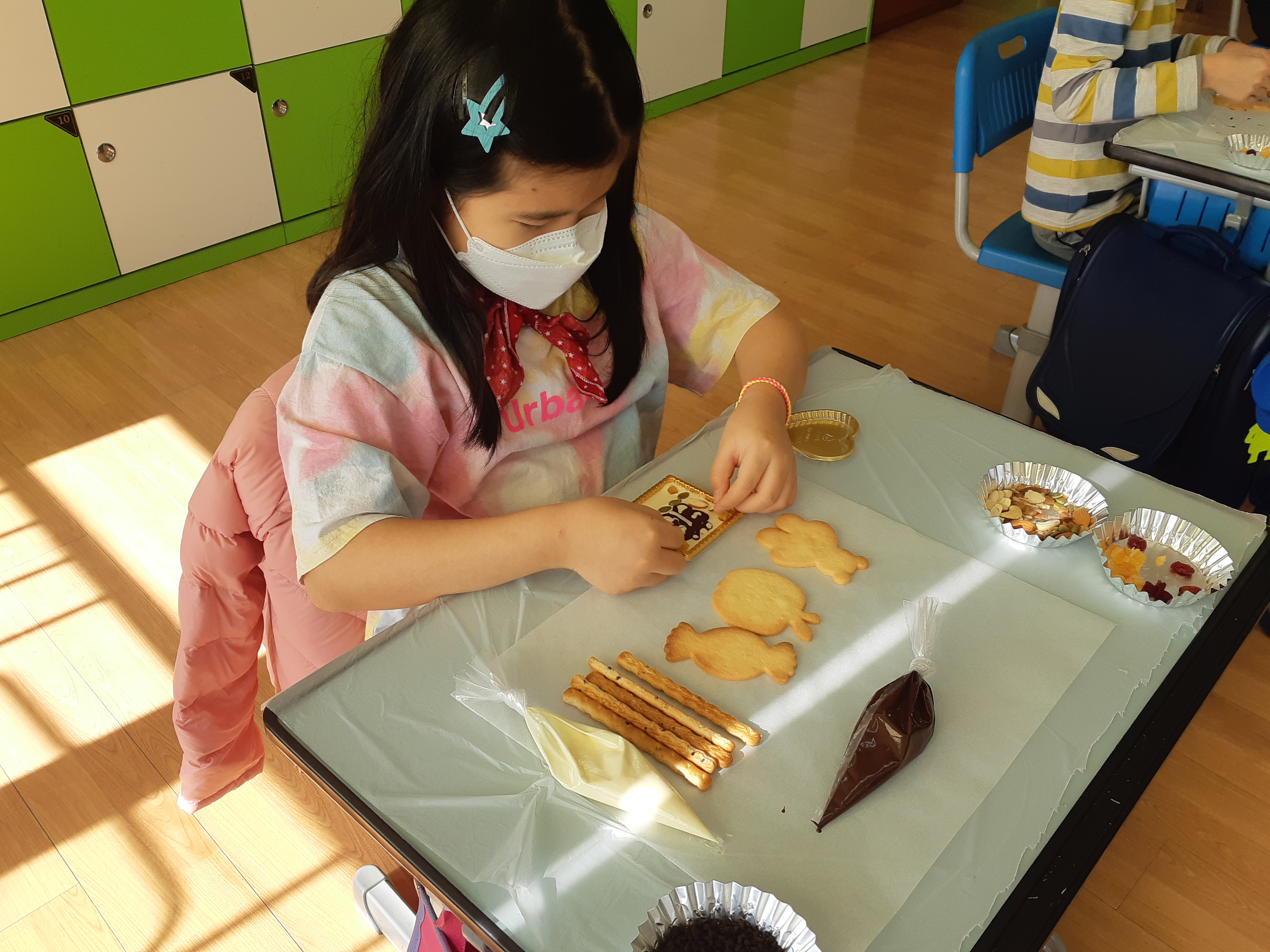 오늘 만큼은 쇼콜라티에가 되어 진지하게 재료들을 가지고 나만의 작품을 만들어 봅니다.