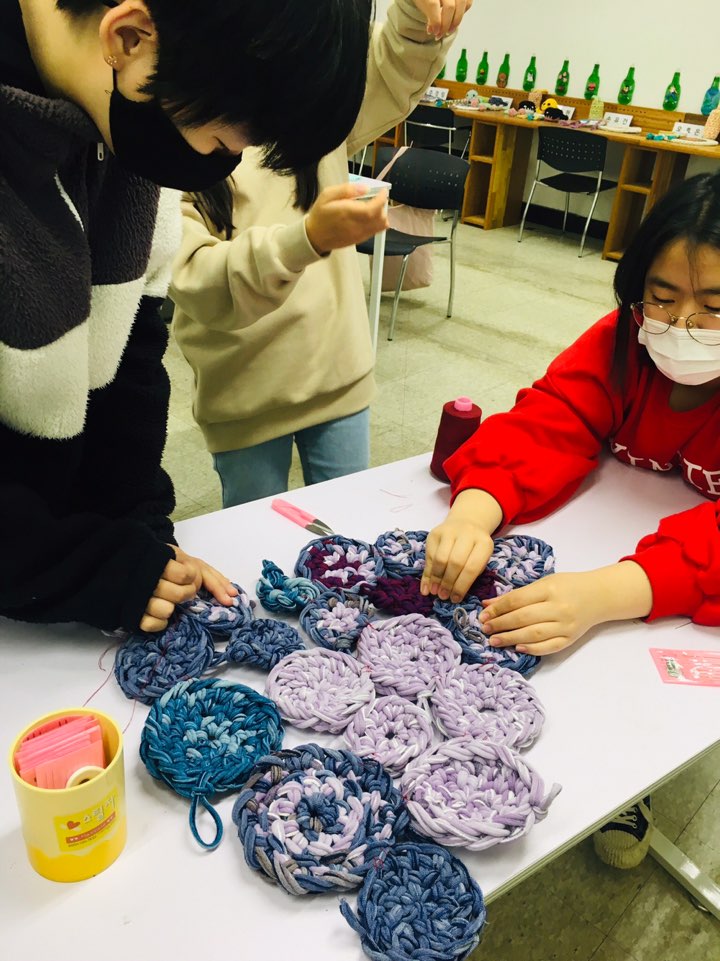 한 팀은 원형뜨기를 이용해 포도송이를 만들어보았다.