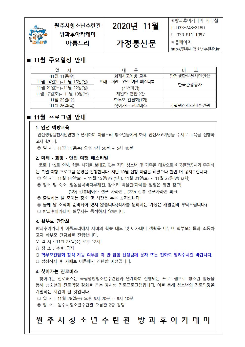 아름드리 11월 가정통신문