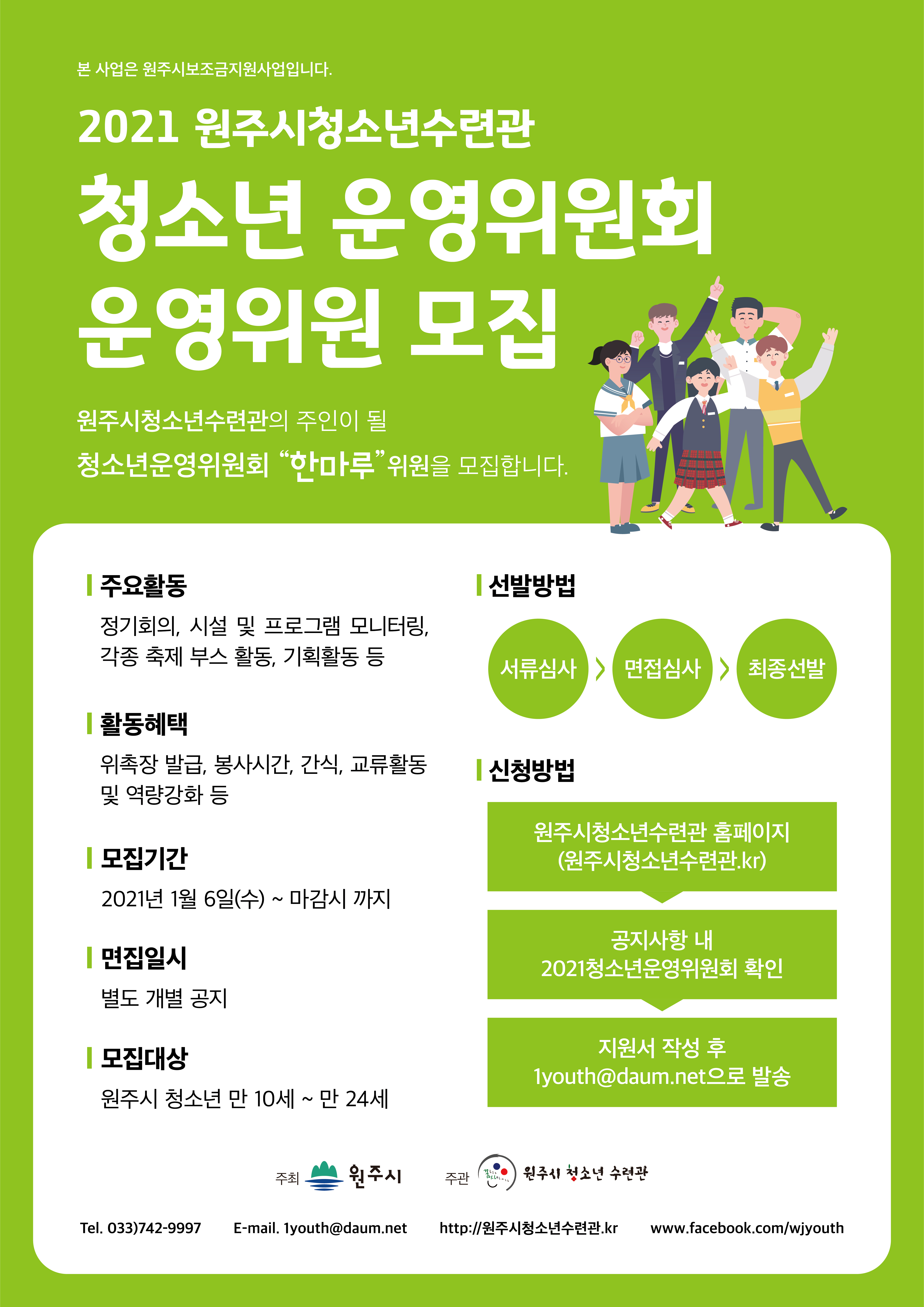 2021 원주시청소년수련관 청소년운영위원회 운영위원 모집안내! (모집마감)