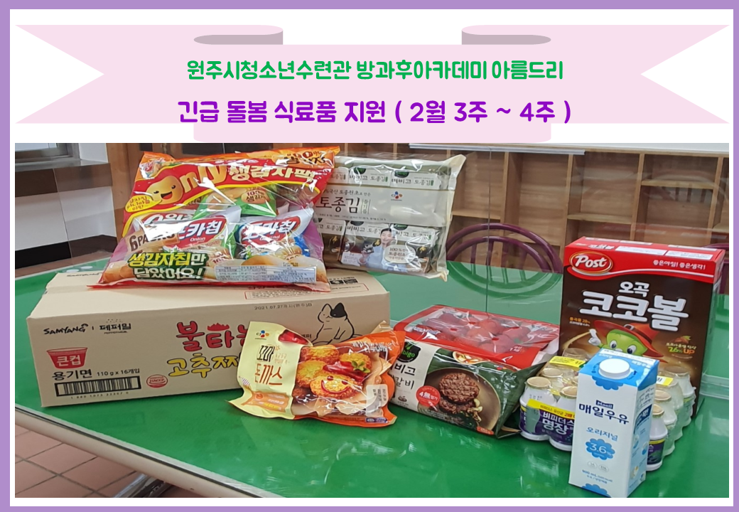19 대응에 따른 긴급돌봄 지원으로 2월 1주 ~ 2주 긴급돌봄 식료품을 배송하였습니다.