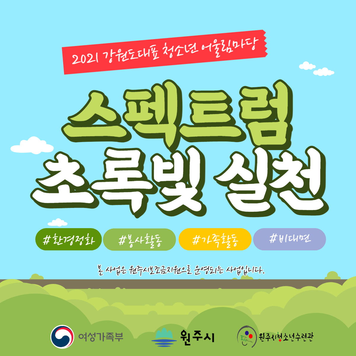 #원주시 #여성가족부 #원주시청소년수련관 #스펙트럼 #초록빛실천 #환경정화 #청소년활동 #비대면프로그램