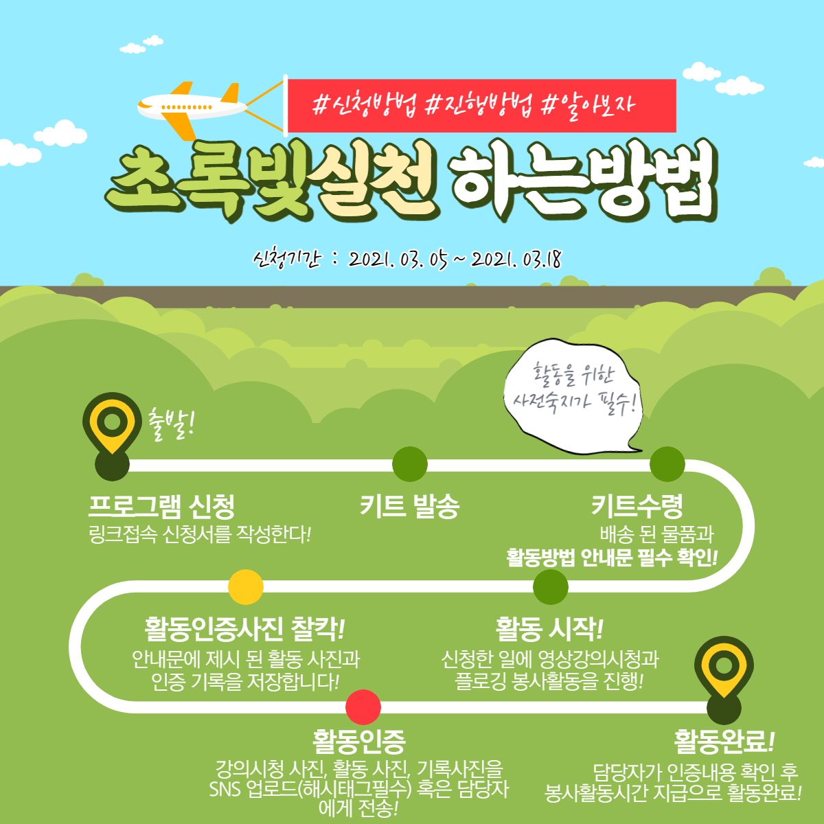 "초록빛 실천"은 비대면 건강증진 및 환경정화 봉사활동이며