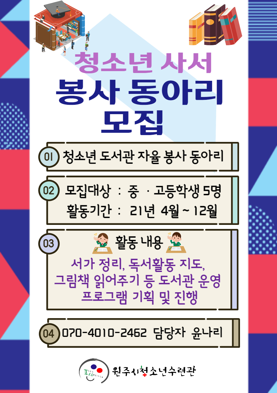 청소년 사서 봉사 동아리 모집