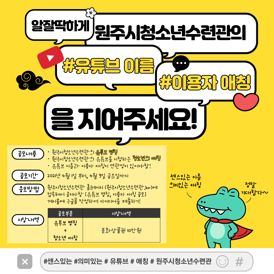 원주시청소년수련관의 [유튜브 이름, 이용자 애칭] 공모