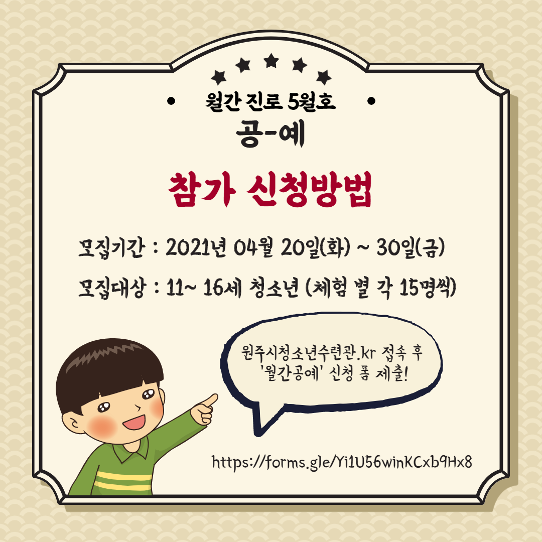 2021년 강원도 대표 청소년어울림마당 월간 진로 5월호 '공예' 참여신청서