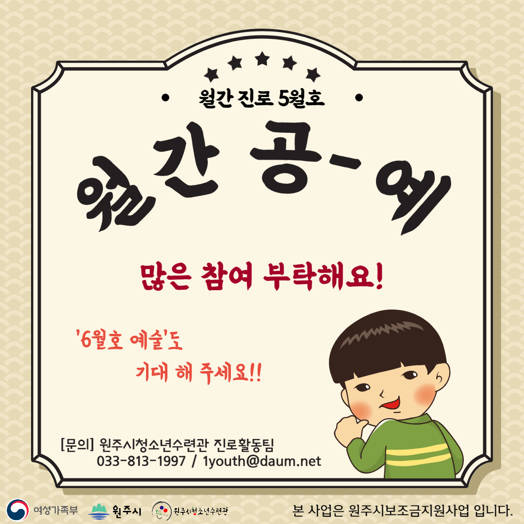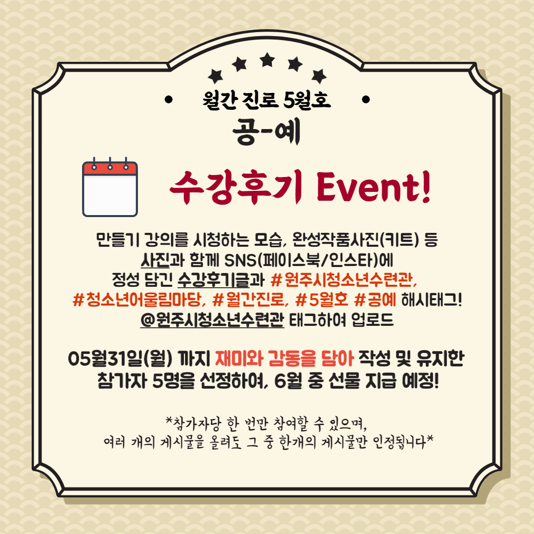(모집마감)2021 강원도 대표 청소년어울림마당 월간 진로 5월호 '공예' 참가모집