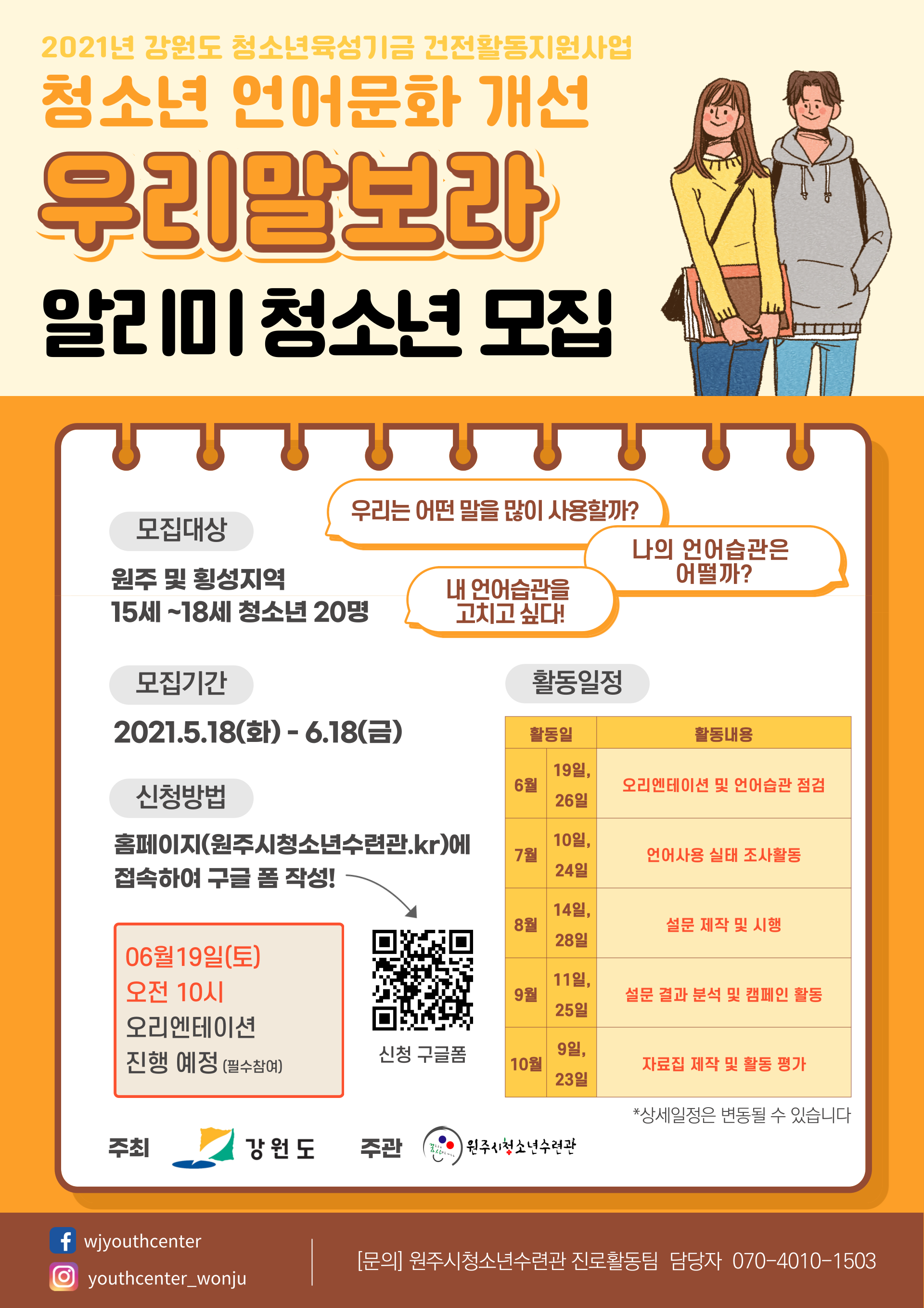 2021년 강원도 청소년육성기금 건전활동지원사업 - 청소년 언어문화개선 프로그램 '우리말보라'