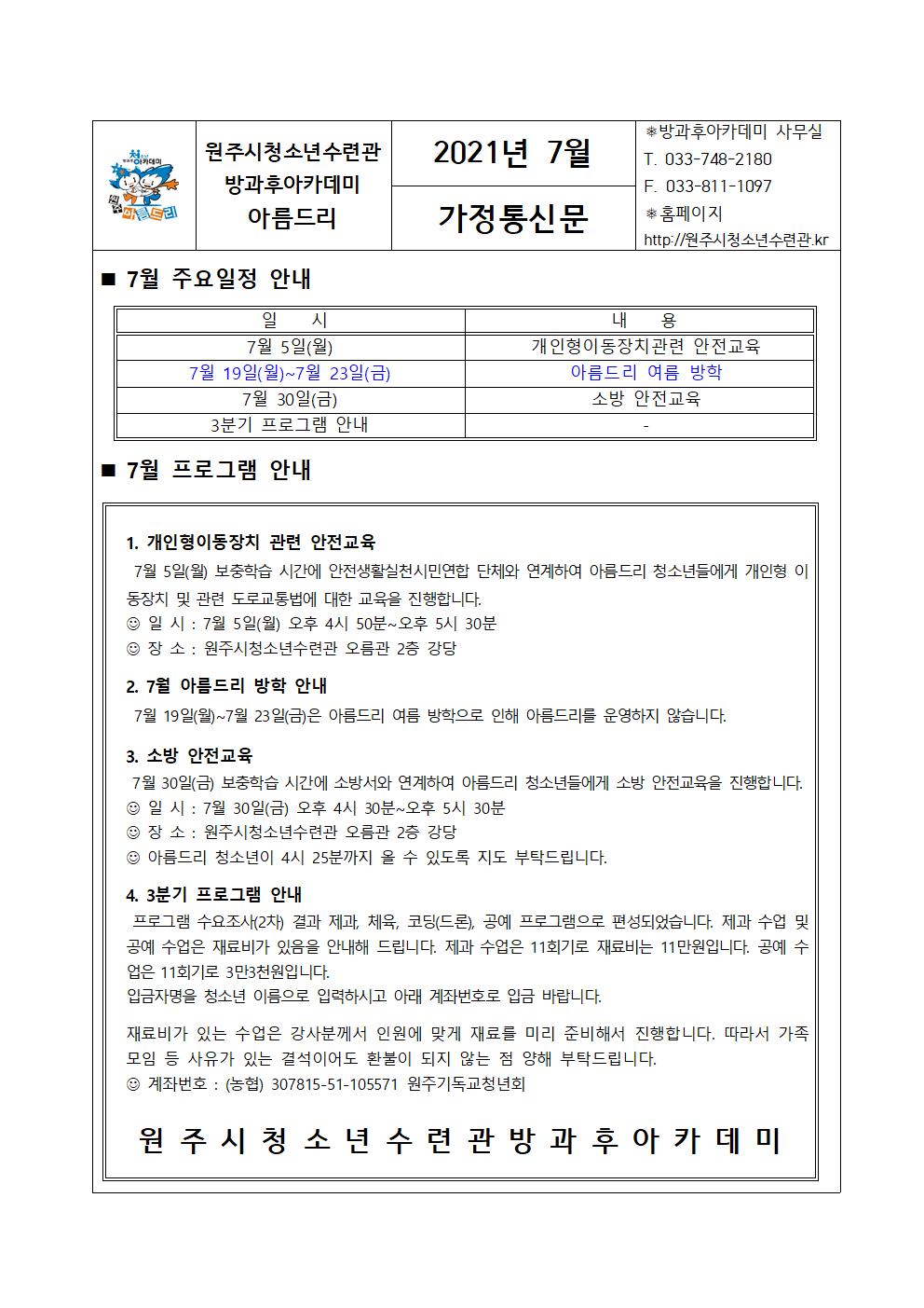 아름드리 7월 가정 통신문