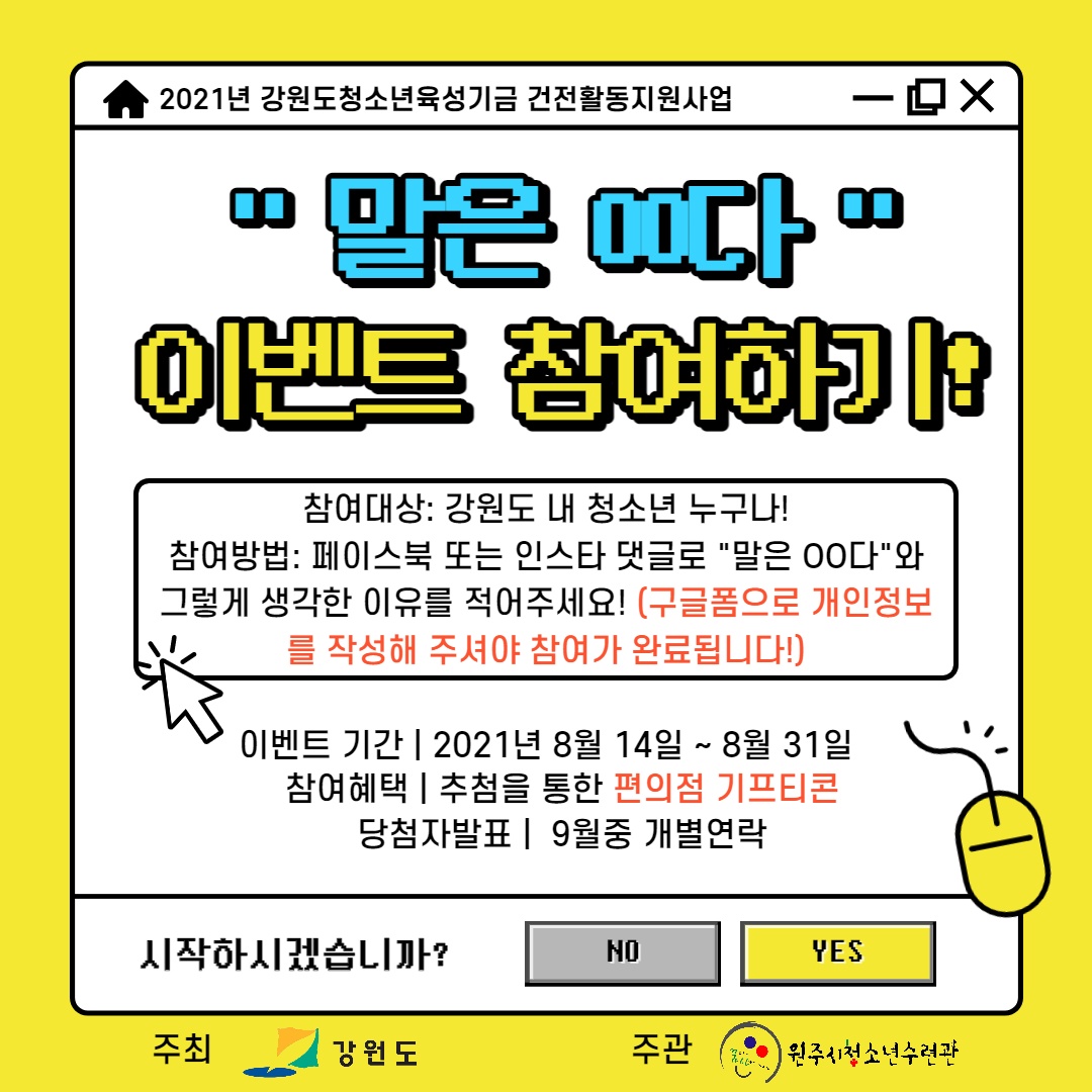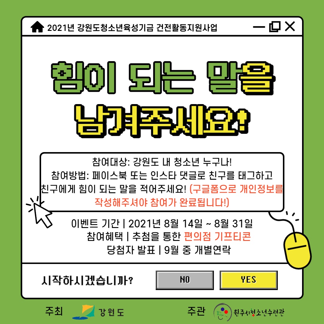 ✔ 참여대상: 강원도에 거주중인 9 ~24세 청소년