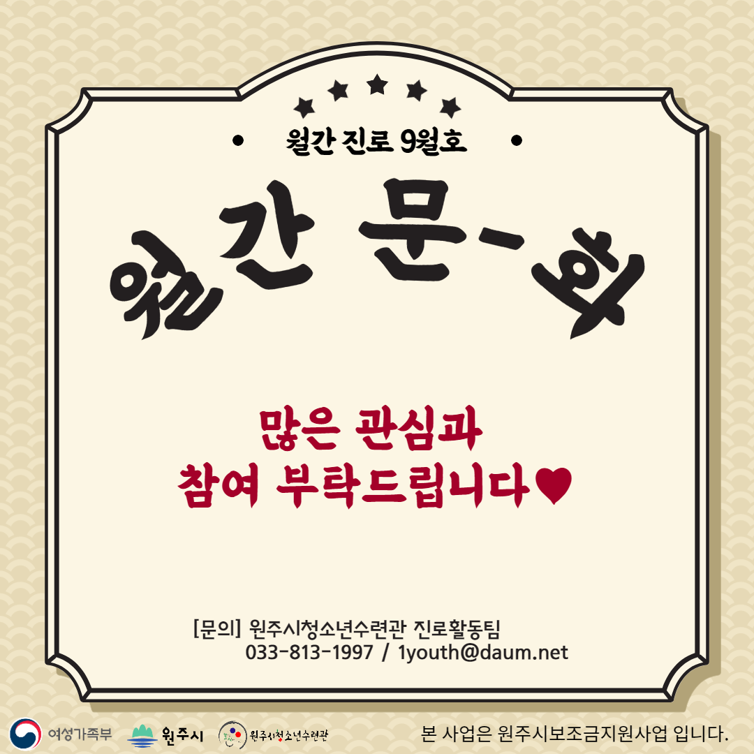 2021 강원도 대표 청소년어울림마당 월간 진로 9월호 '문화' 참가모집