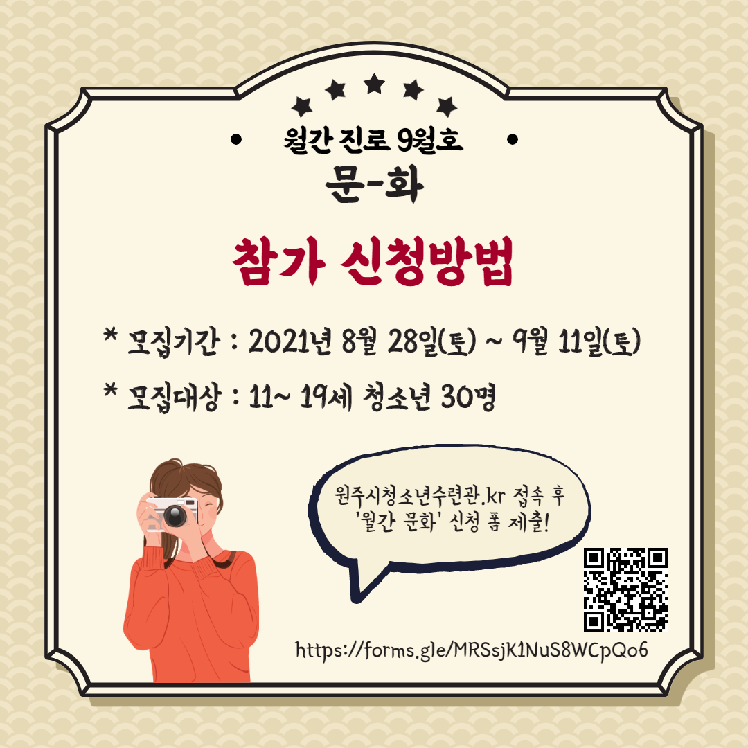 2021년 강원도 대표 청소년어울림마당 월간 진로 9월호 '문화' 참여신청서