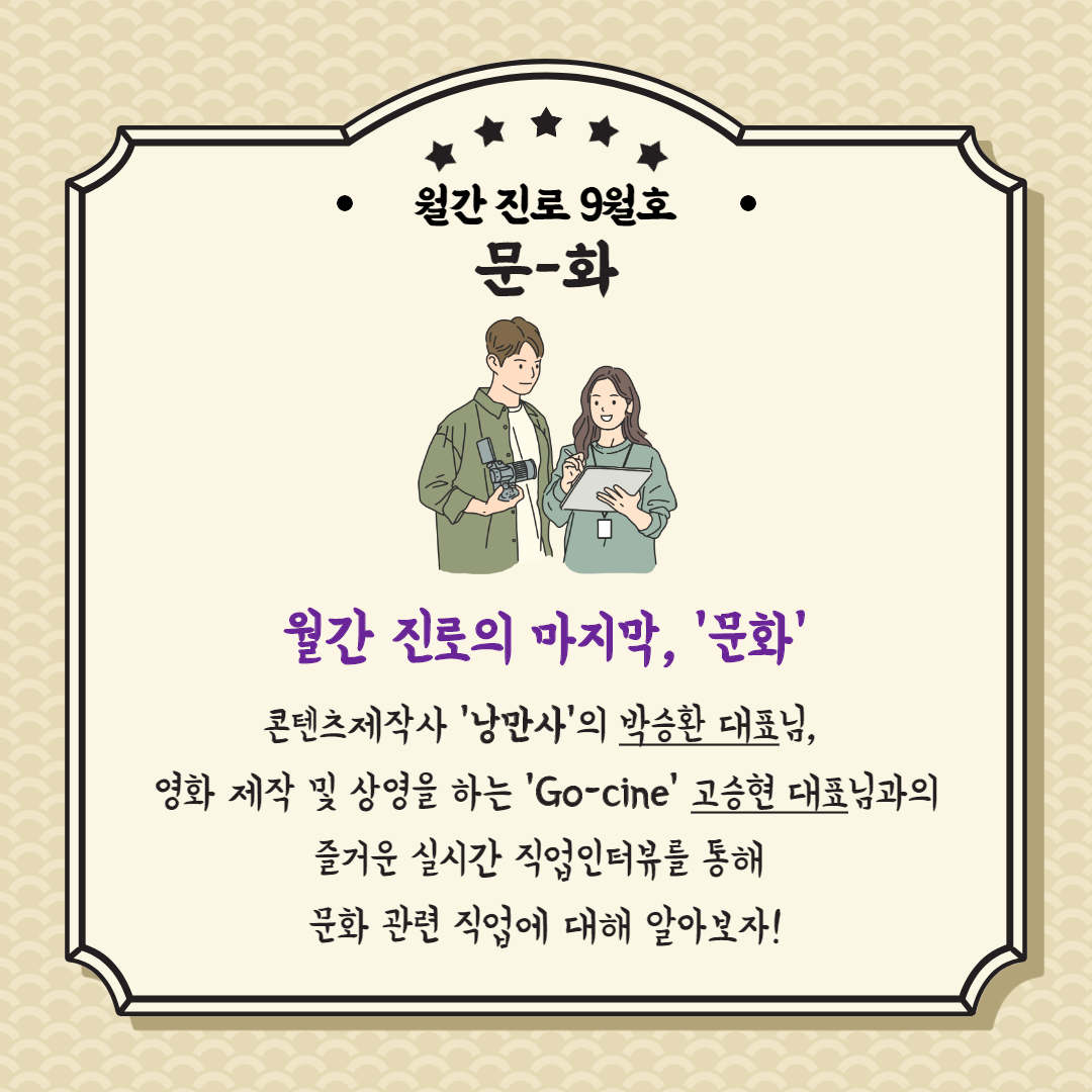 실시간 직업인터뷰를 통해 문화 관련 직업을 알아보고 꿈을 키워볼 수 있는  시간을 마련했습니다!