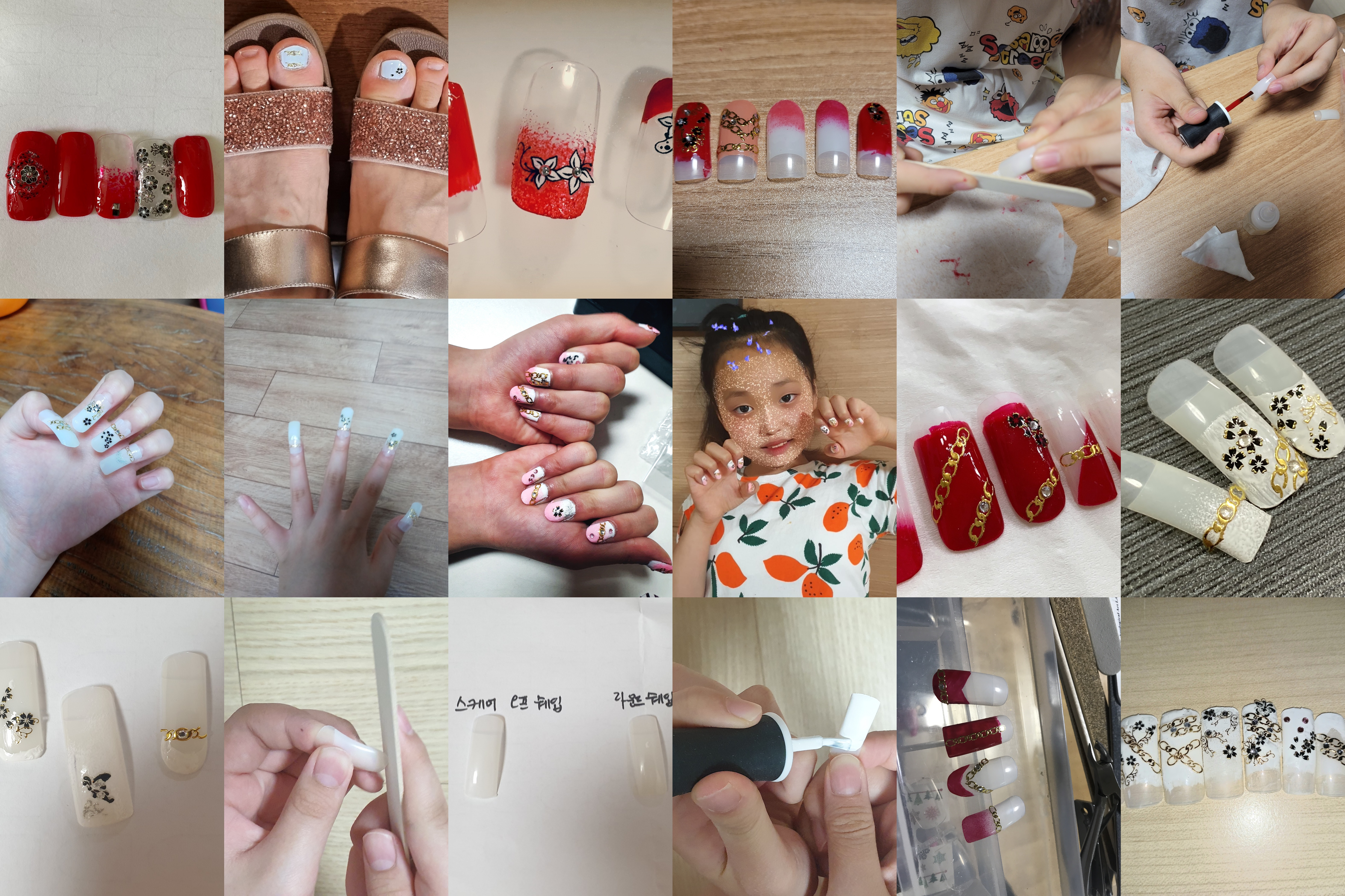네일아트는 쉐입만들기부터 바르고 스티커로 꾸미는 과정까지,